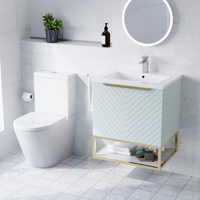 Roxy Blue 800mm Basin Vanity With Brushed Brass Frame & Close Coupled Toilet