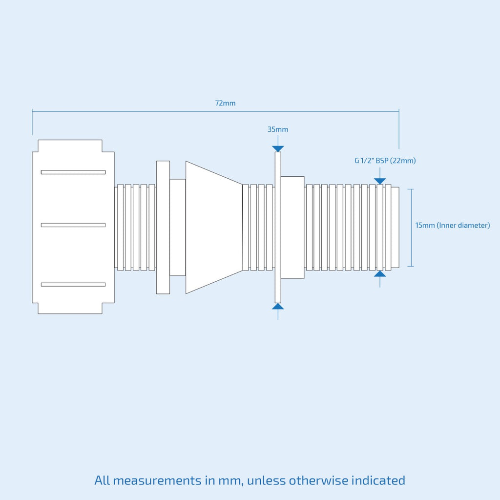 They each feature a large strengthened polypropylene fixed bulk head and an adjustable backing nut.