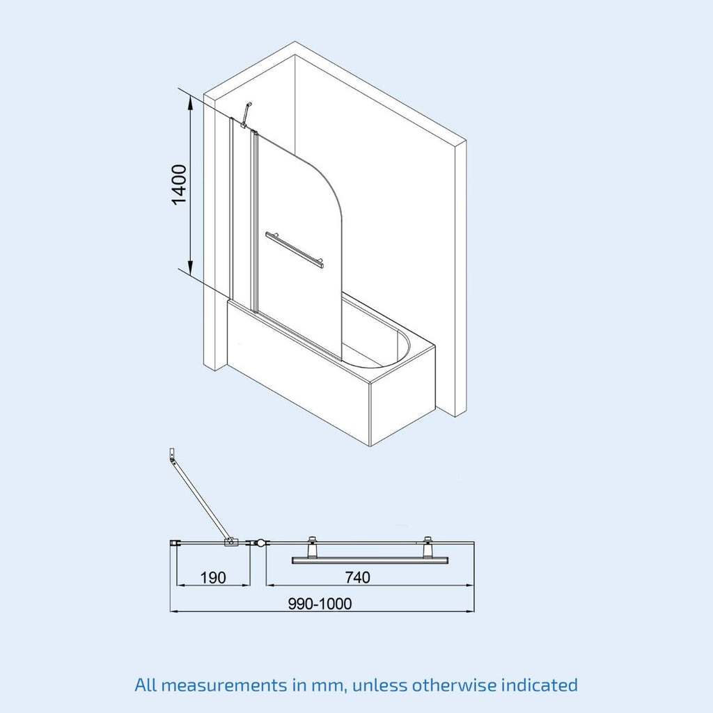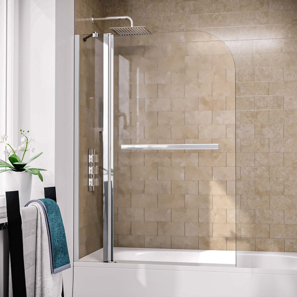 1000mm Curved Glass Bath Screen Swing Door & Towel Bar Chrome