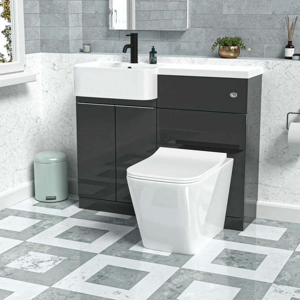 Elevate your bathroom with our 1000mm Left Hand Freestanding Cabinet featuring a Basin & WC Unit and a toilet. This space-efficient design maximizes functionality while adding a touch of modern elegance to your space. Complete with a built-in basin and WC unit, this versatile cabinet offers convenience and style for your daily routine. The Back-to-wall toilet is made from high-quality ceramic and features a smooth surface that is easy to clean and maintain. This set is an ideal choice for those looking to update their bathroom with a stylish and functional vanity cabinet, water closet unit and toilet.