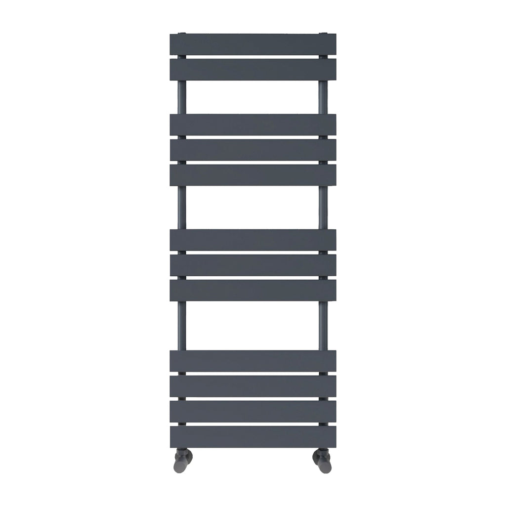 The 1200 x 450mm Anthracite Flat Panel Heated Towel Rail Radiator is a stylish vertical radiator designed for modern bathrooms. With a sleek anthracite finish and space-saving flat panel design, it functions as both a towel radiator and a compact heating solution. Ideal for warming and drying towels quickly, this tall radiator adds elegance and efficiency to any bathroom radiator setup.