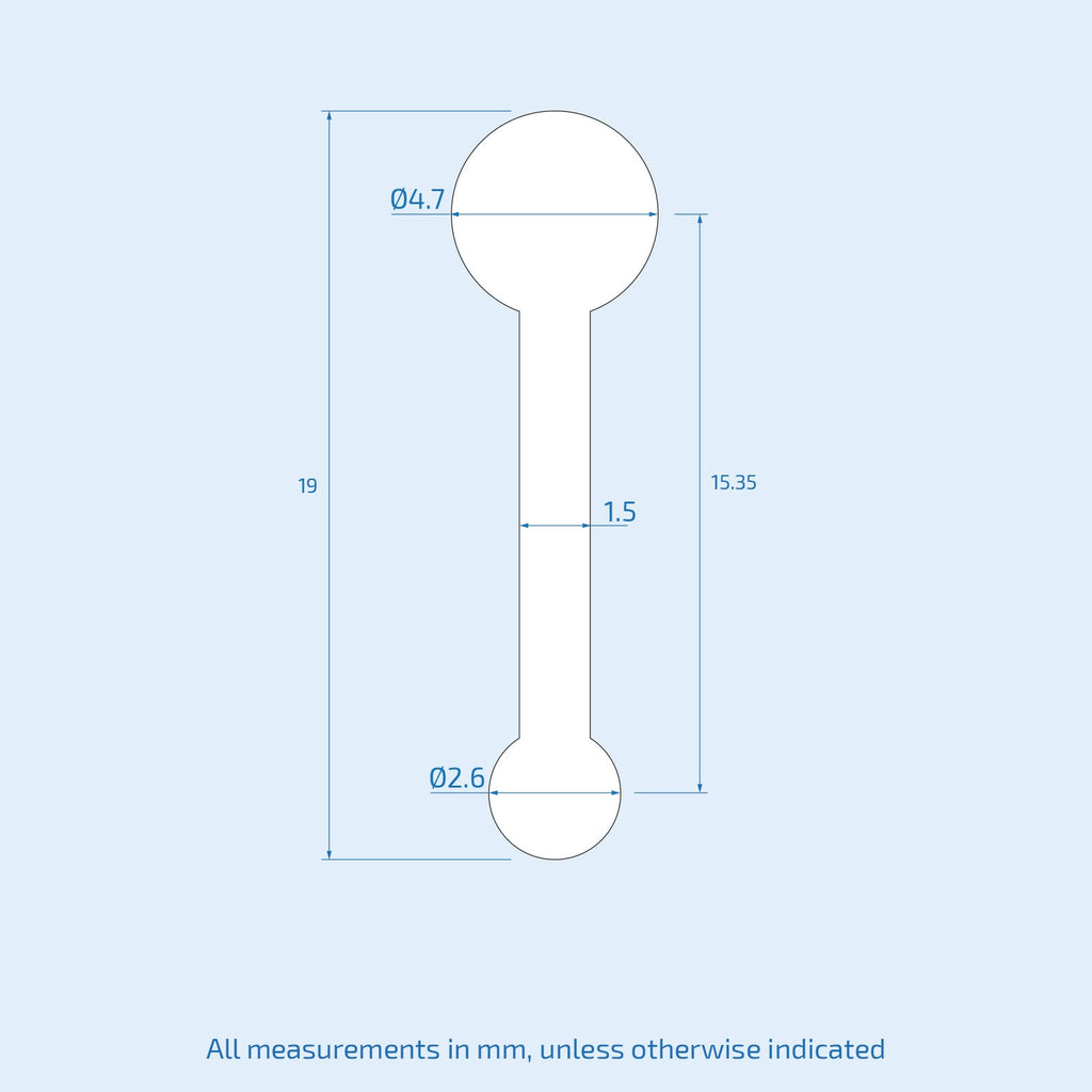 - Width: 19mm, with 4.7mm and 2.6mm diameters at either end, perfect for folding shower screens