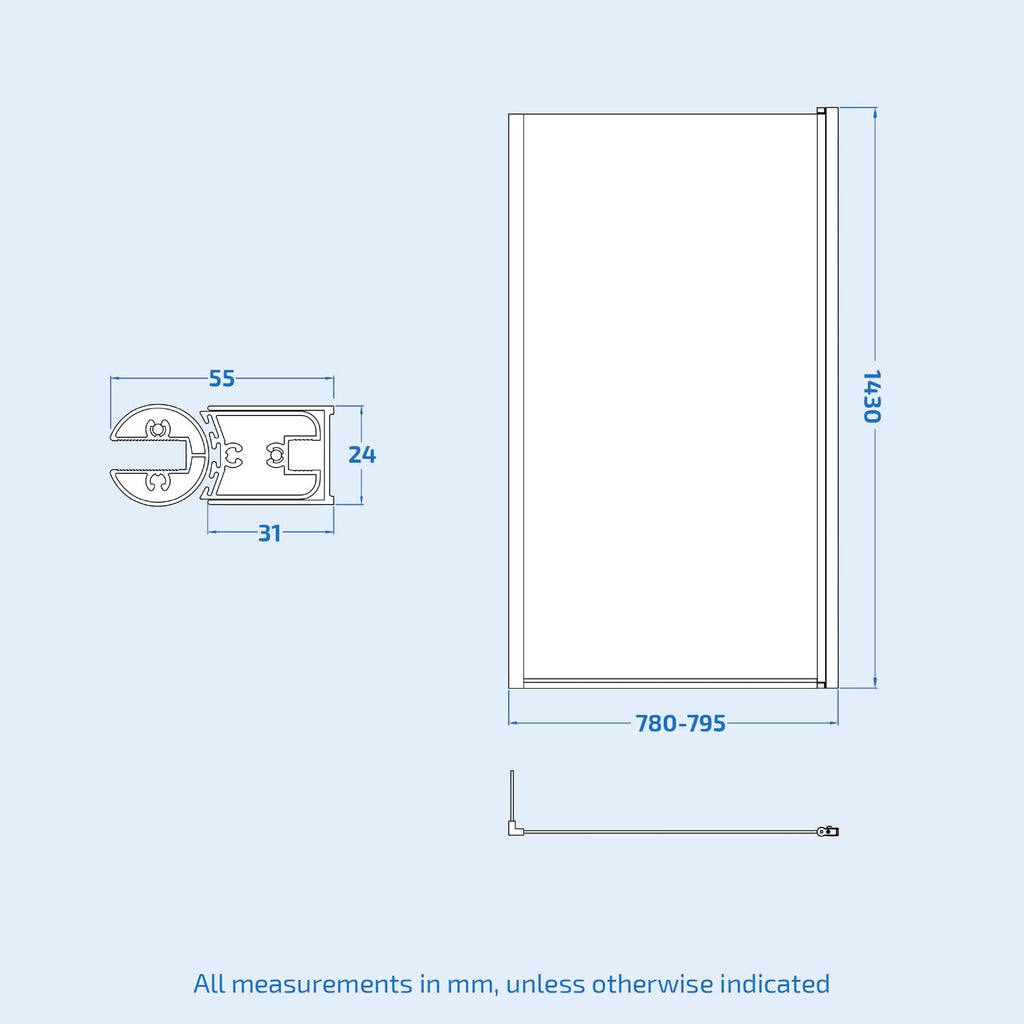 - Shower Screen Width: 780-795mm