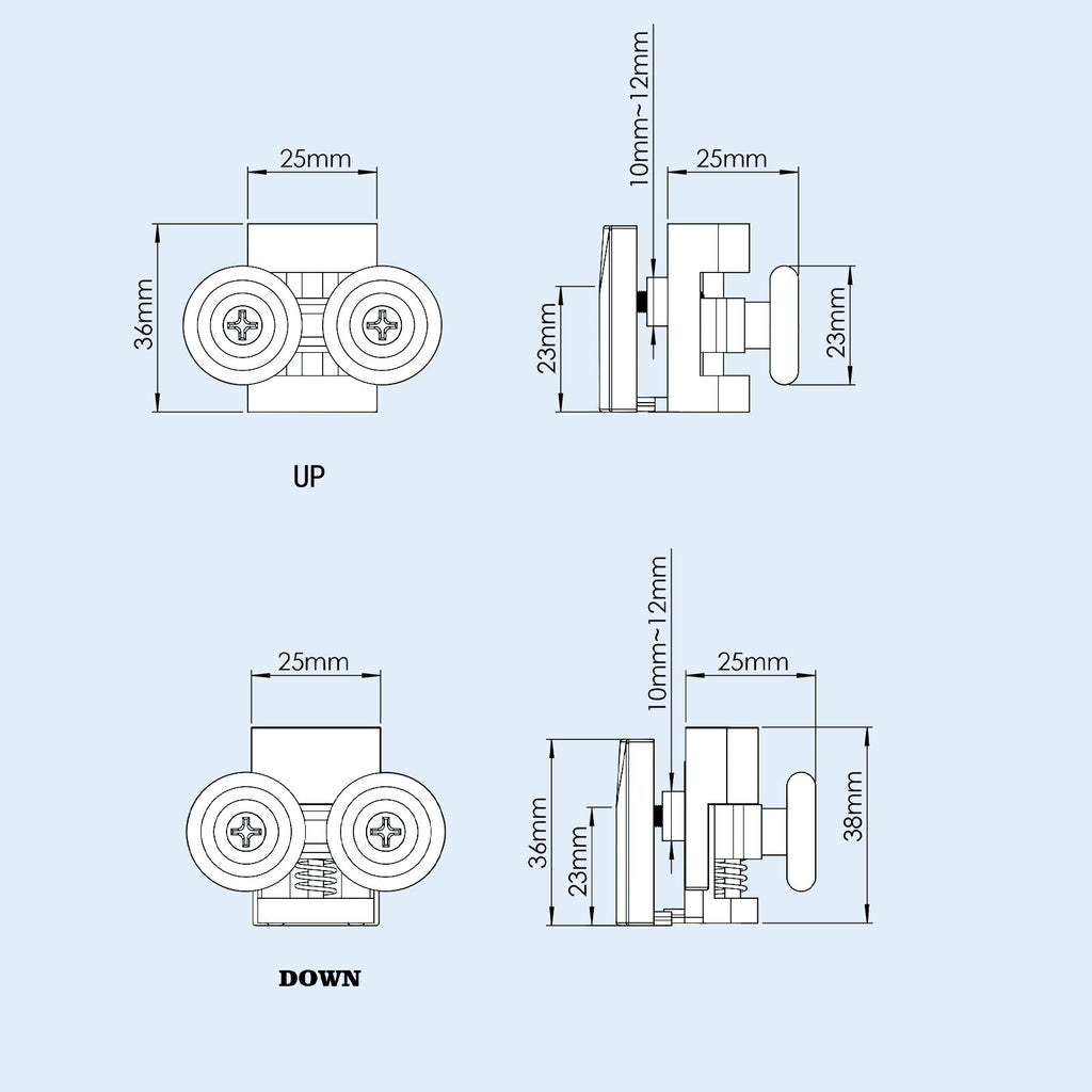 - Easy to install, the upper wheel adjusts the wheel up and down by twisting the screw, and the lower wheel uses a spring to buckle the inside of the slot
