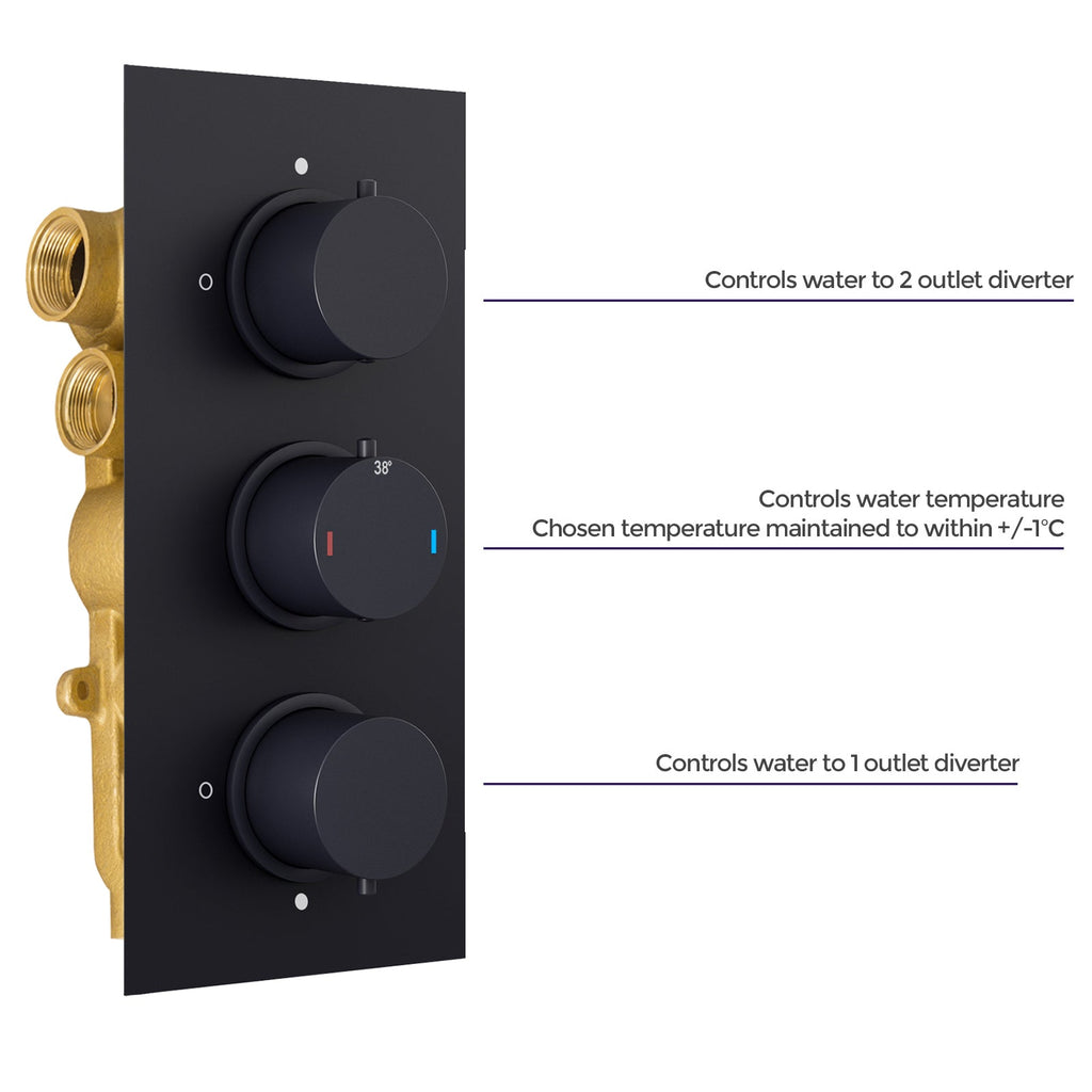 - Top dial - controls water to 2 outlet diverter
