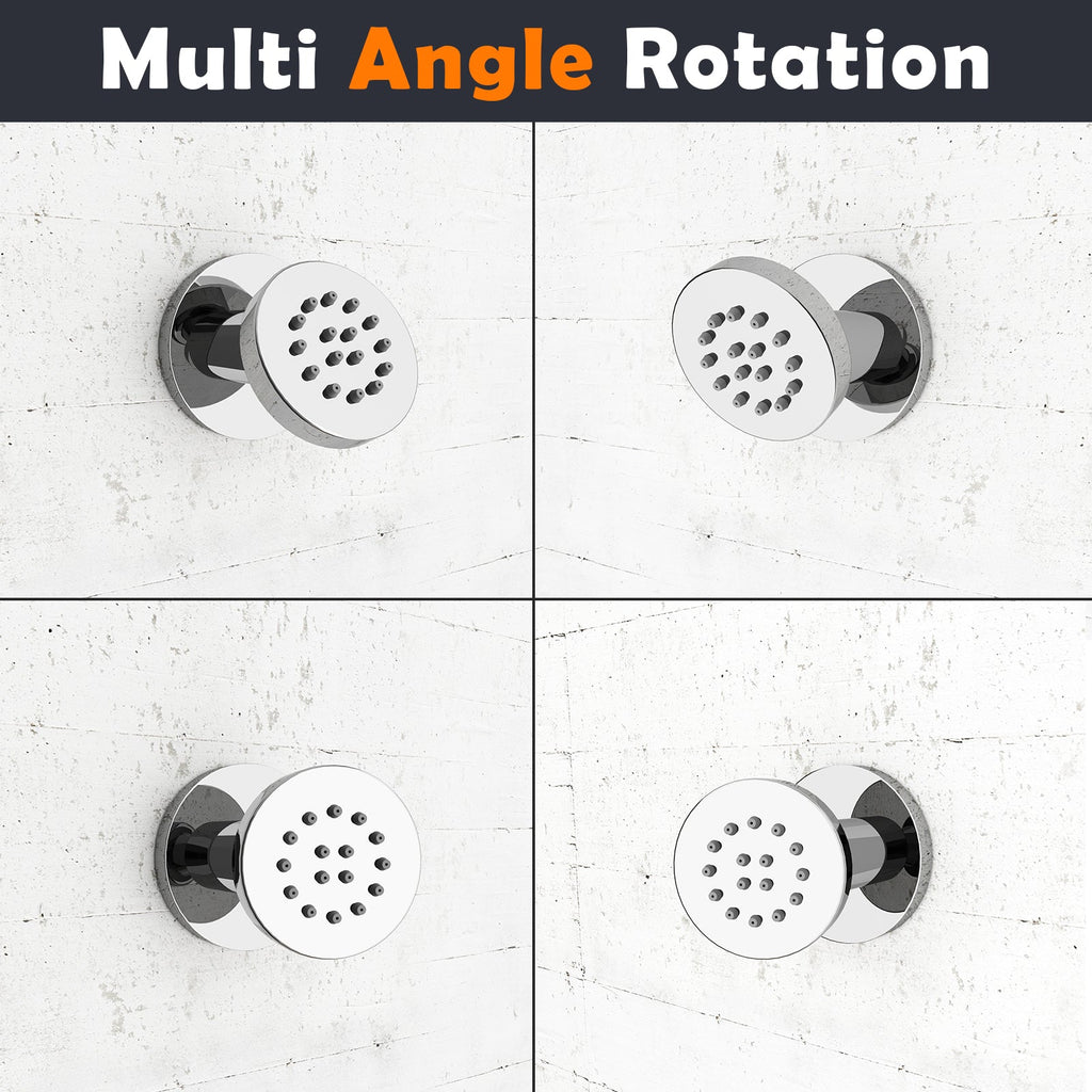 This combination comes with four (4) units of round shower massage jets. Manufactured using solid brass and comes in a mirror shine chrome plated finish. The brass construction provides durability and resistance to corrosion, while the chrome finish gives them a sleek, modern look.