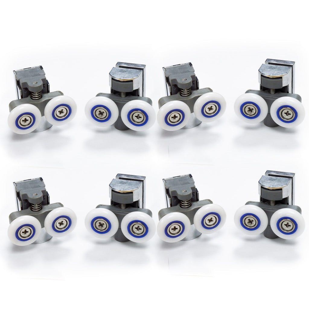 Shower Door Wheels 4 Top and Bottom Roller Runners Chrome are replacement wheels that are designed to fit onto the top and bottom of shower doors. The wheels are designed to run smoothly and quietly, making it easy to slide the shower door open and closed.