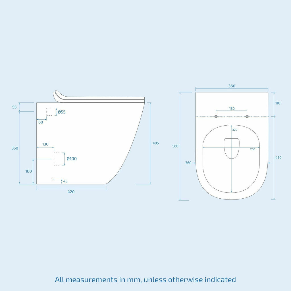 - Toilet Seat: Top fixing, ultra-slim soft close seat and cover