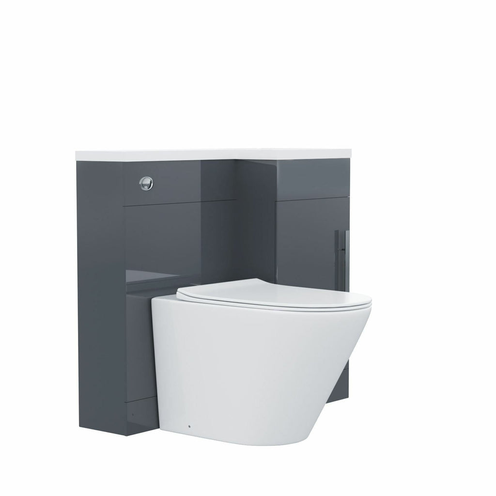 This stylish, freestanding sink and rimless toilet vanity unit combo is a perfect space-saving option for any tight space you may have in the bathroom. The vanity and WC unit is made from water-resistant MDF making this suitable for fitting next to your bath or shower. It features a unique resin basin shape that creates the focal point of your bathroom, while the vanity unit is finished with a striking dark grey high gloss finish. The toilet and sink vanity combo include a concealed cistern for extra peace of mind.