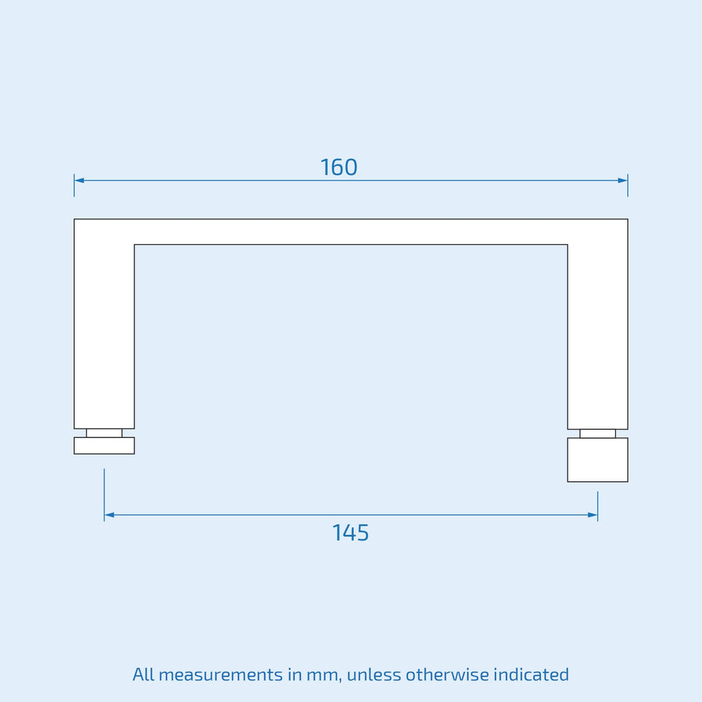 The handle measures 160 mm in diameter, providing a comfortable and secure grip when opening or closing the shower door. It is designed to fit a 145 mm hole-to-hole center, making it easy to install on most standard shower doors.