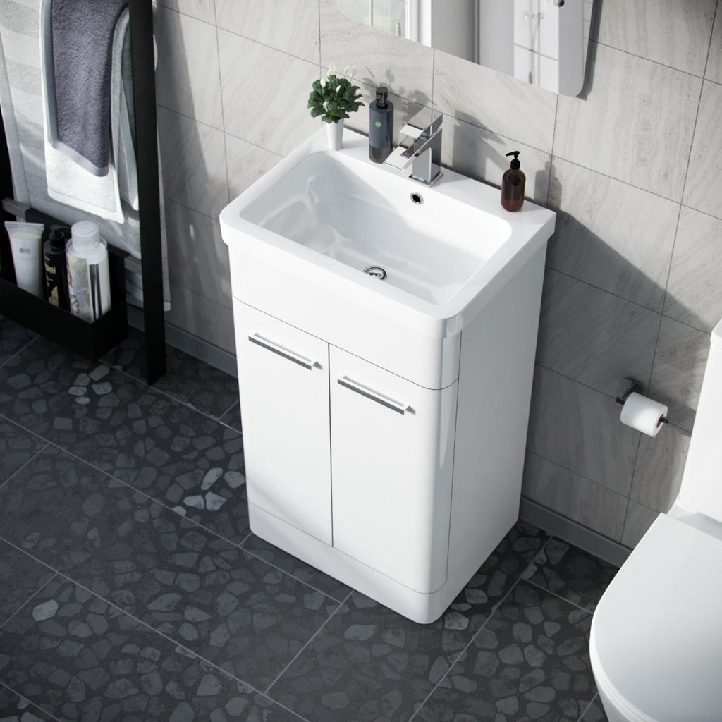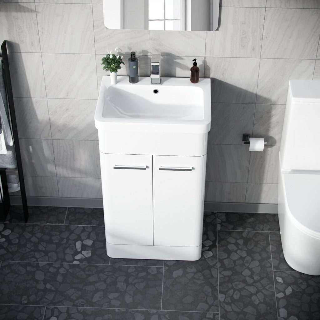 This unit features one tap hole basin and a double door vanity unit which is perfect for cloakrooms and bathrooms. It also offers ample storage and washing space while minimising the space taken up in your bathroom.