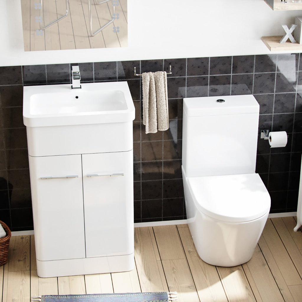 This beautiful 500mm White Gloss Basin Vanity Unit and basin comes with a stunning design Rimless Close Coupled Toilet. Engineered with everyday use in mind, providing a storage solution for your bathroom, our Basin Vanity Unit gives you the best of both worlds, combining incredible durability and a beautiful gloss finish.
