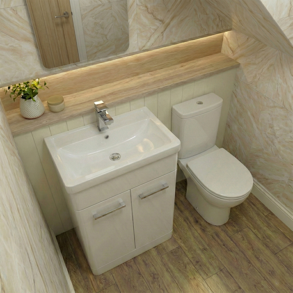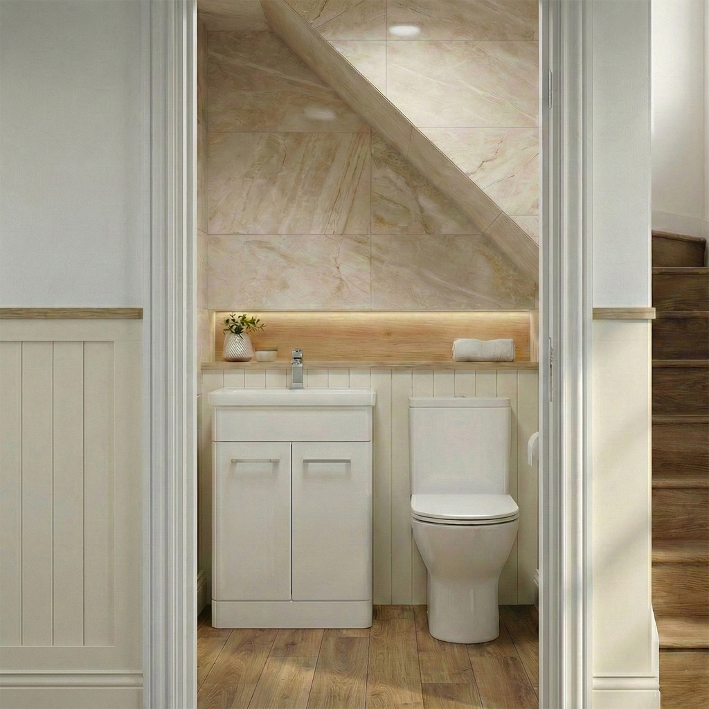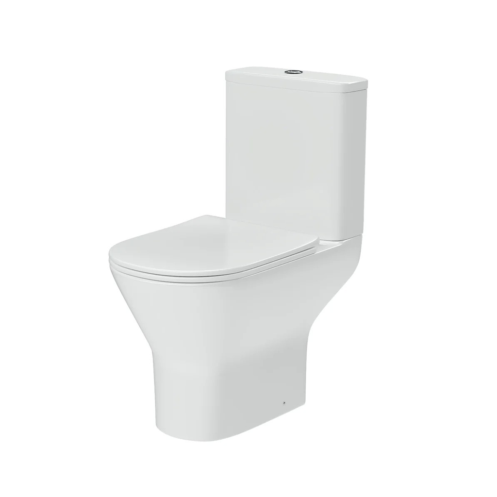 The perfect combination of style, space-saving design, and everyday practicality for small bathrooms and cloakrooms. This bundle pairs the contemporary Theo rimless close-coupled toilet with soft-close seat and dual-flush system with the sleek Afern 500 mm freestanding vanity unit featuring a ceramic wash basin and ample storage, plus a Modern Mono Single Lever Mixer Tap in polished chrome. Each component is engineered for modern interiors, offering effortless hygiene, comfortable use, and smart storage, all in a coordinated set that enhances compact spaces.