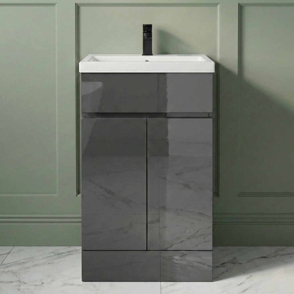 - 1 × 500 mm dark grey PVC freestanding vanity cabinet