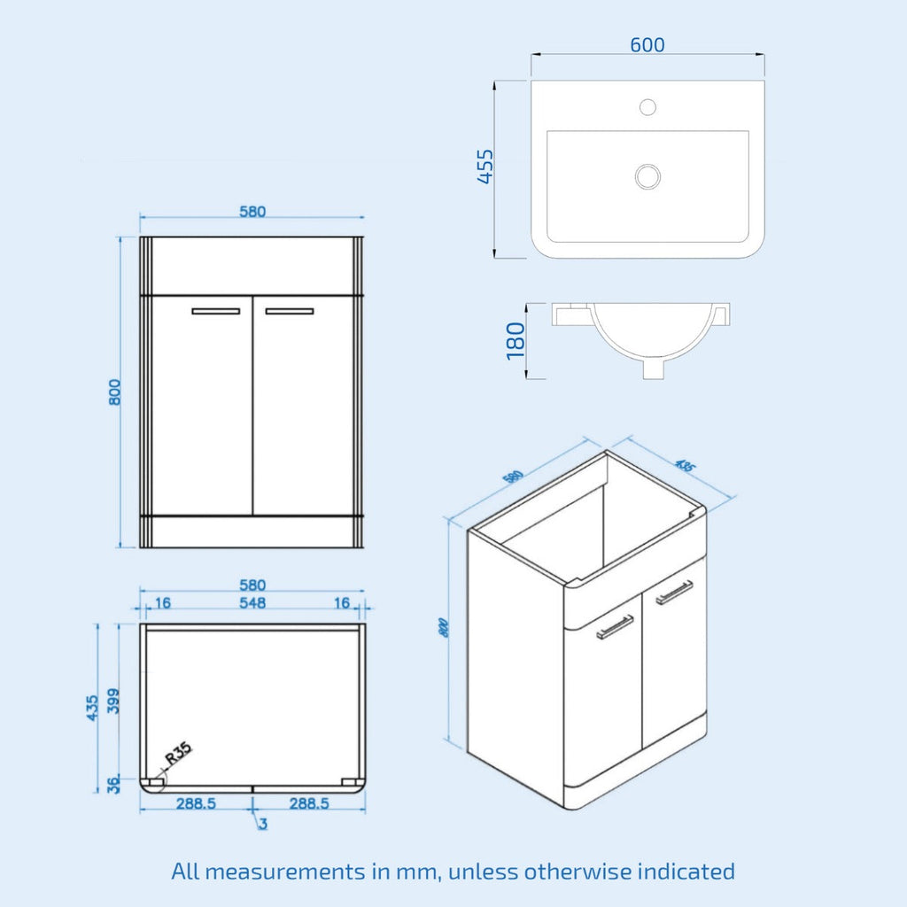 - Cabinet Material: Water resistant 16mm Grade A MDF