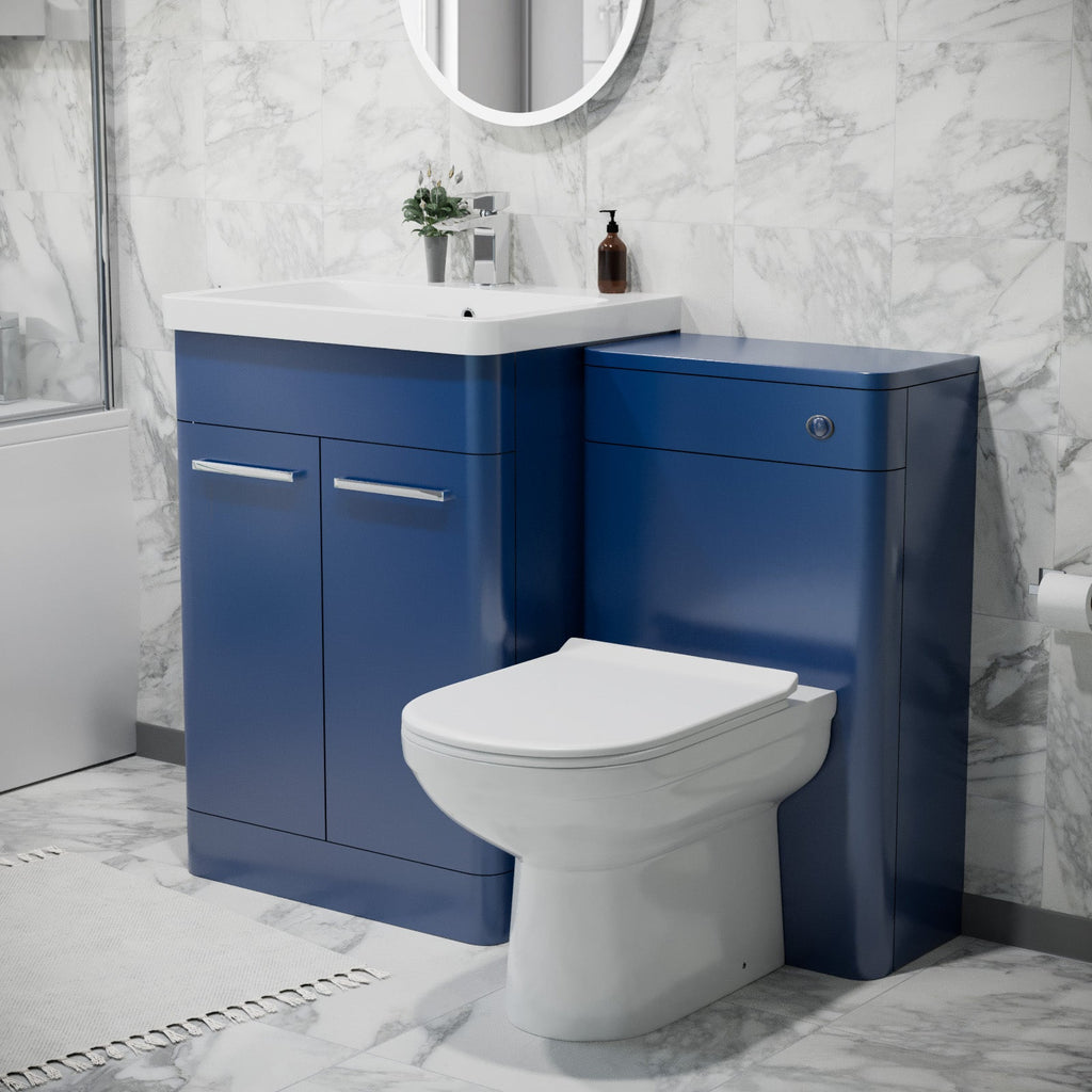 Introducing our stunning Afern combination unit. Transform your bathroom into a stylish and organized space with this Vanity Bathroom Unit featuring a one tap hole basin and a double door vanity unit, WC unit, concealed cistern, and toilet. The unit's clean lines and smooth semi-gloss finish give your bathroom a sleek and sophisticated look.