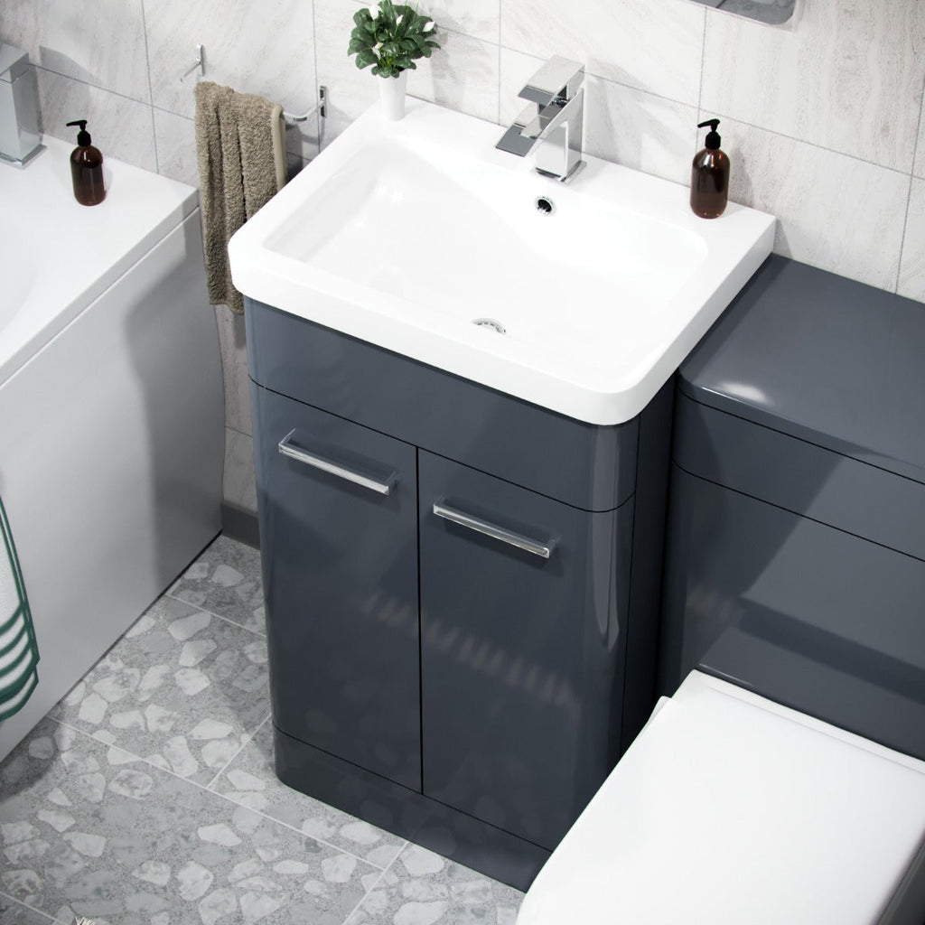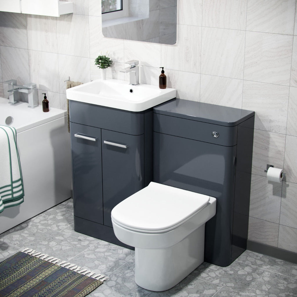 This bathroom suite features a stunning back to wall toilet, a beautiful 1000mm Vanity basin unit, and a bath that is perfect for any size bathrooms.