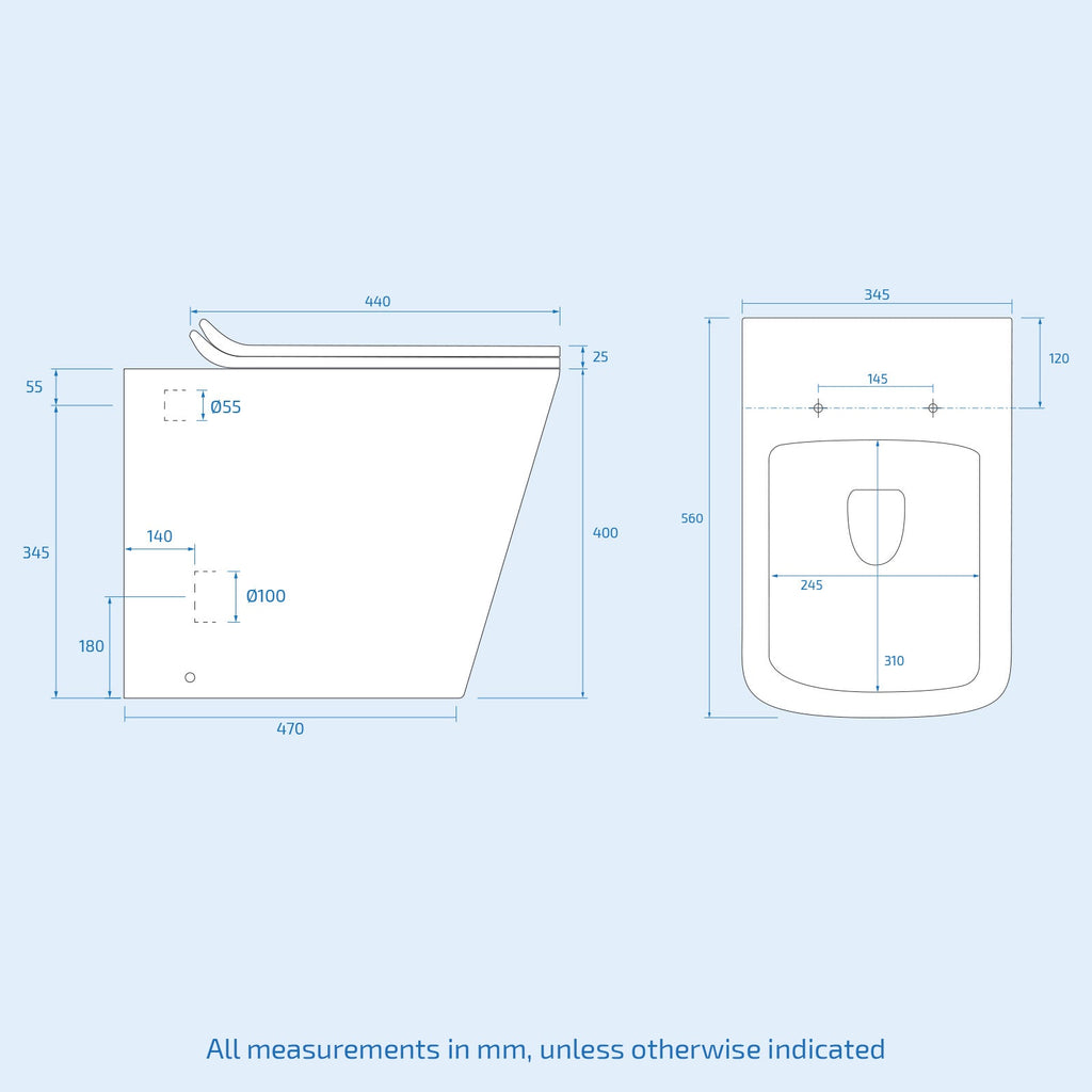 - Dual flush, 6 litre full flush, 4 litre half flush