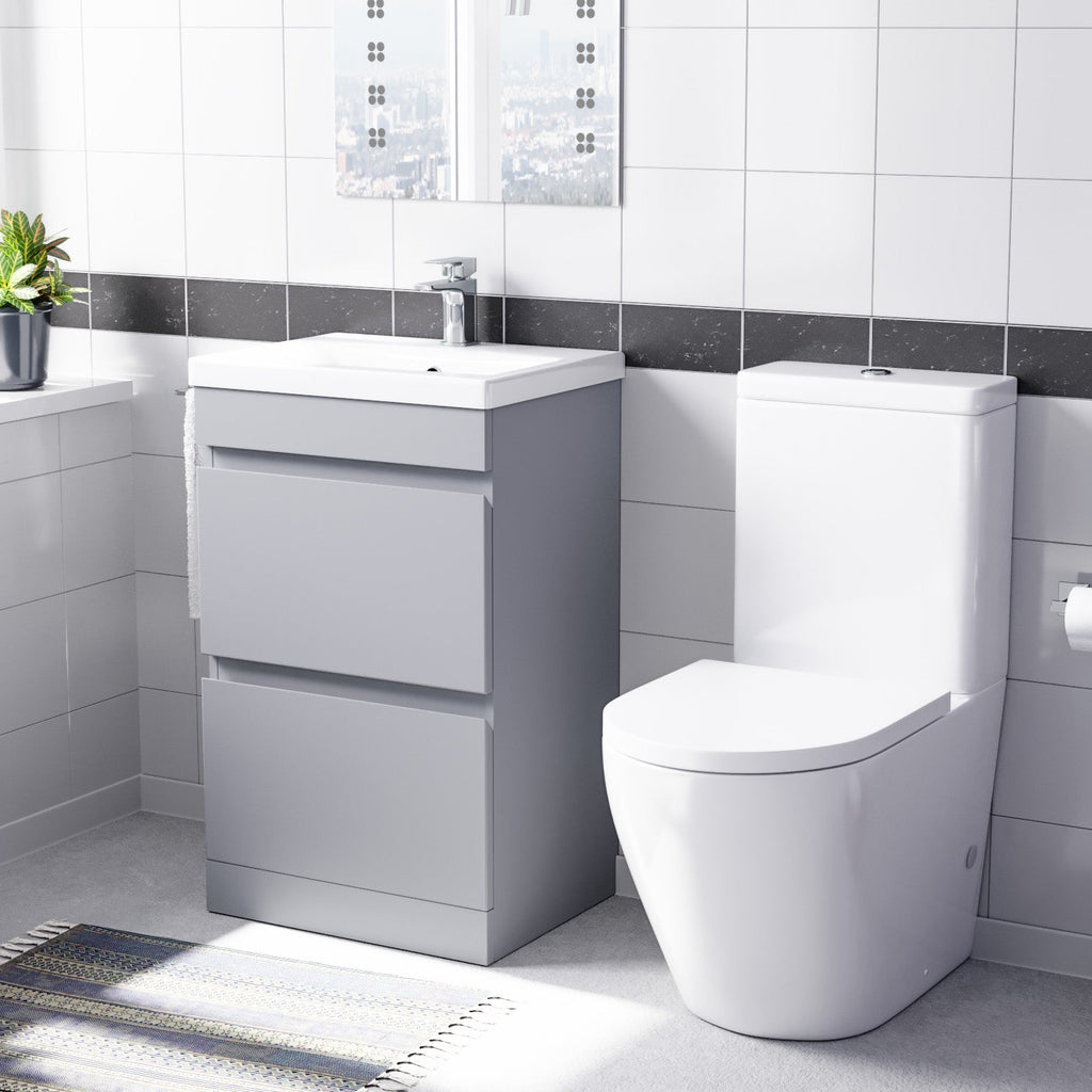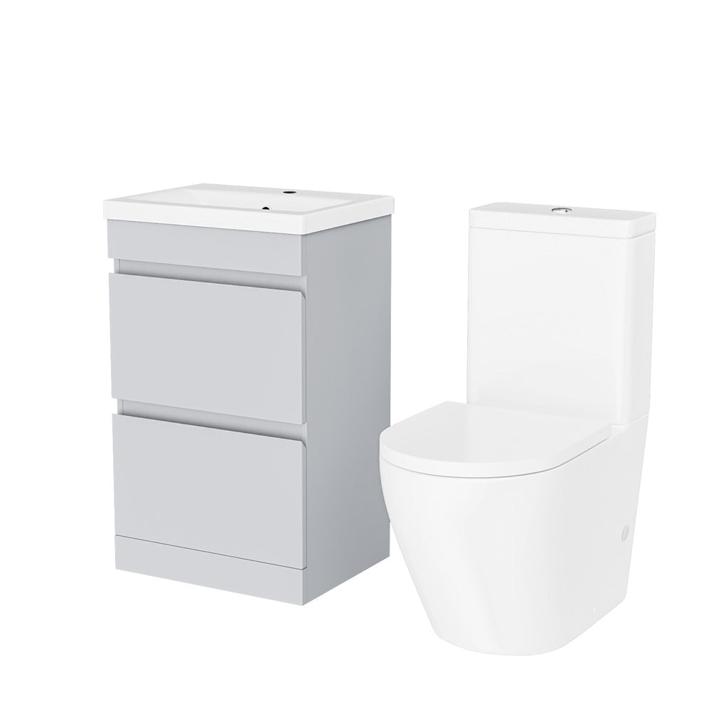 This 500mm 2 drawers freestanding basin vanity and close-coupled toilet set offers ample storage and washing space while minimising the space taken up in your bathroom. The vanity unit is a stylish and functional addition to any bathroom, featuring a high-quality ceramic basin and shelving underneath, making it ideal for everyday use. The vanity unit is constructed with water-resistant materials and has a sleek matte finish, adding a modern touch to your bathroom. Also, our close-coupled toilet comes complete with a dual flush cistern and soft closed seat, making it safe for people of all ages to use and helping prevent fingers from getting trapped. This furniture combination is ideal for any modern bathroom.