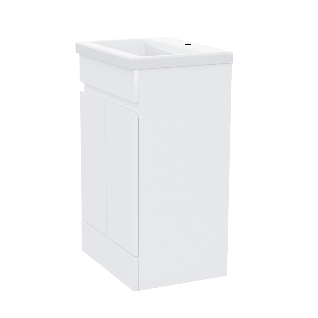 This beautiful 500mm white gloss freestanding basin vanity unit comes complete with a high-quality basin