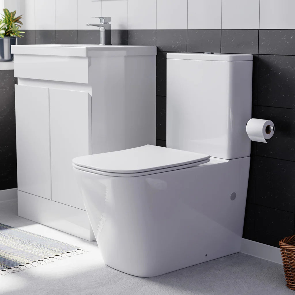 Transform your bathroom into a modern oasis with our 600mm Freestanding Basin Vanity and Rimless Square Closed Coupled Toilet. The freestanding basin vanity, measuring 600mm in width, offers both style and functionality with its sleek design and convenient storage space. Meanwhile, the rimless square closed coupled toilet combines contemporary aesthetics with practicality, featuring a hygienic rimless bowl and a compact, space-saving design. Elevate your bathroom experience with these stylish and efficient fixtures.