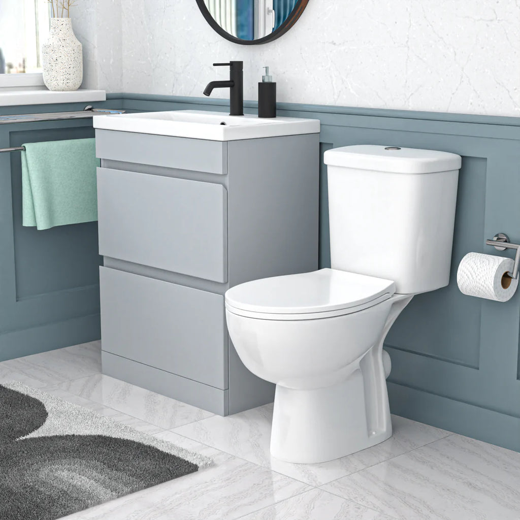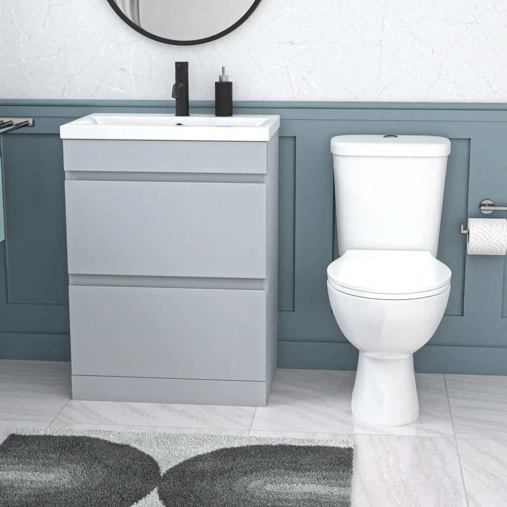 Clean look with a floor standing vanity that has 2 drawer with toilet that will complement your tidy bathroom. Get a complete look at your ideal bathroom that will satisfy your dreams.