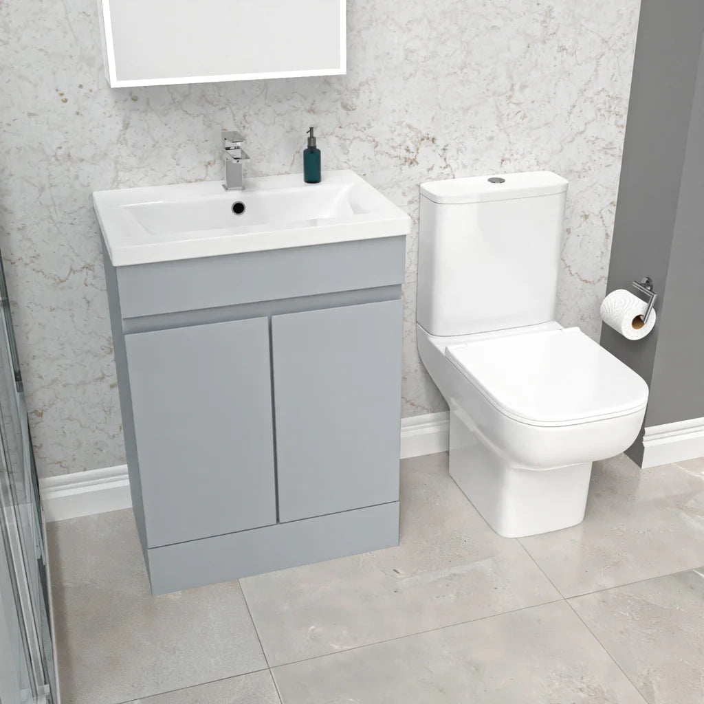 Introducing the 600mm Basin Vanity Unit & Close Coupled Toilet! Experience elegance and functionality with this stunning vanity unit. It features a high-quality counter-top basin and ample storage space, making it the perfect addition to your bathroom.