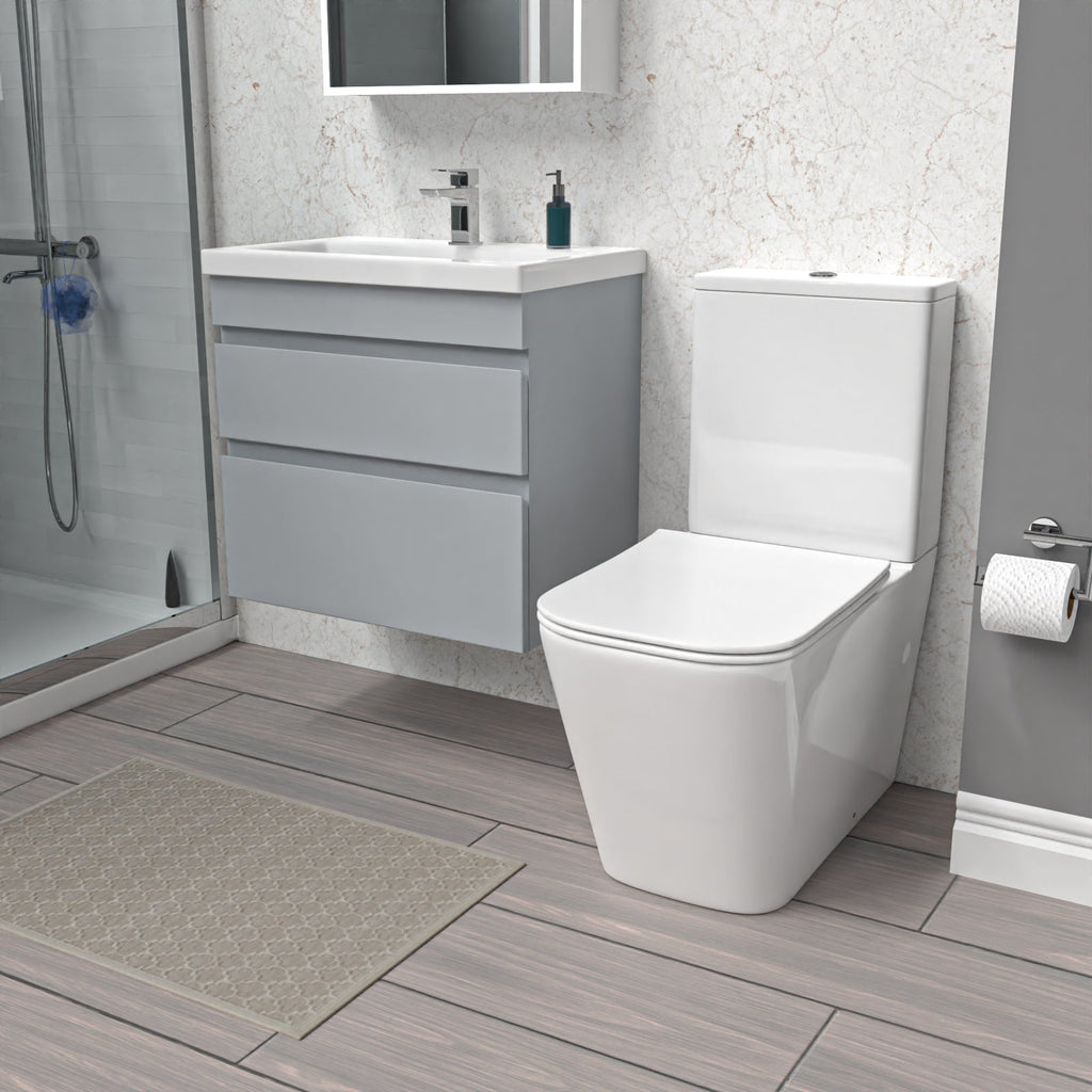 The stunning small cloakroom close-coupled toilet comes complete with a dual flush cistern and soft-close seat which makes it safe for people of all ages to use, and help prevent fingers getting trapped.