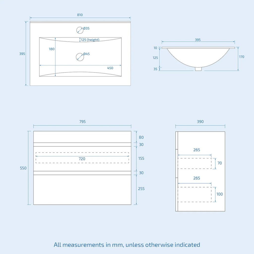 - Fully assembled Vanity unit