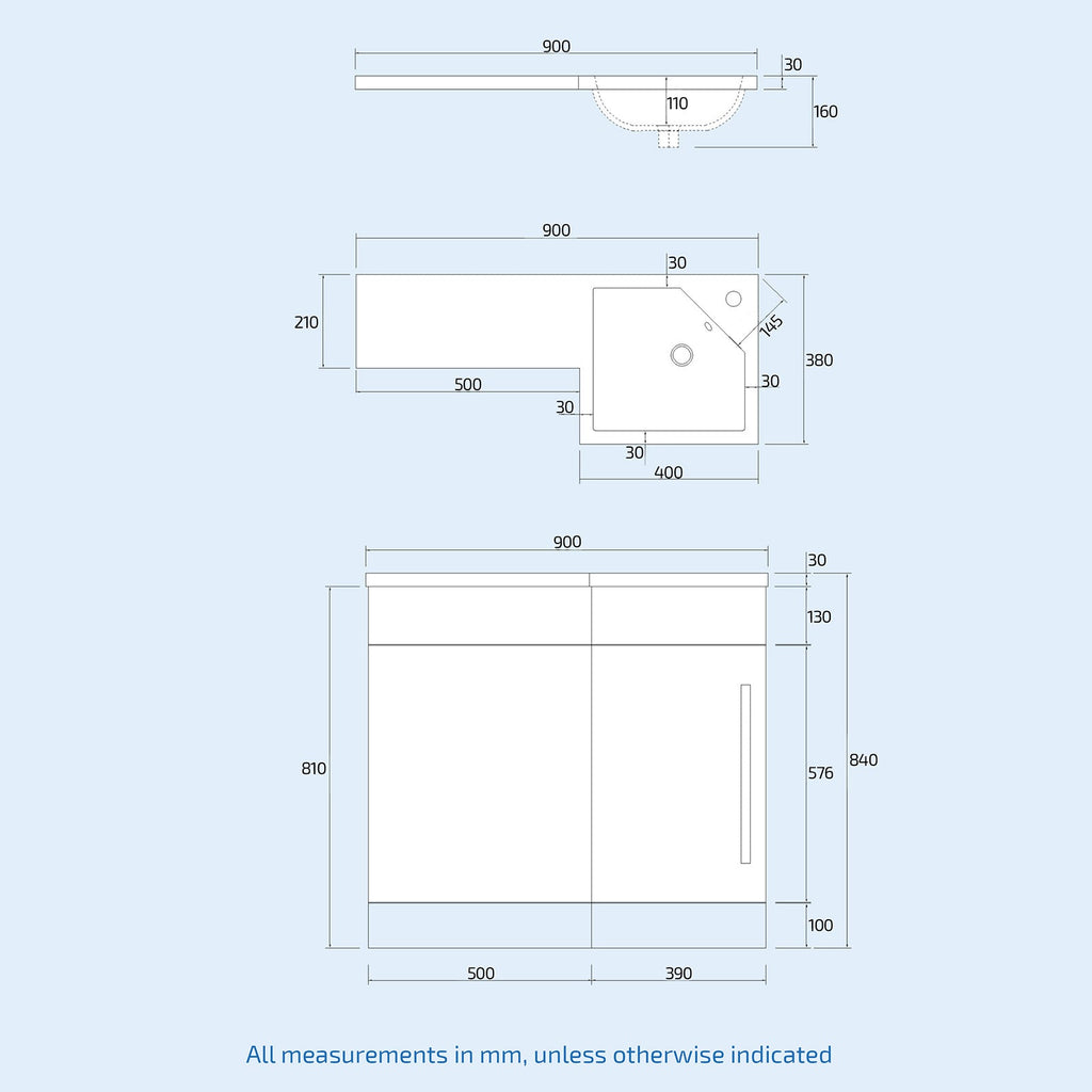 - Total width: 900mm