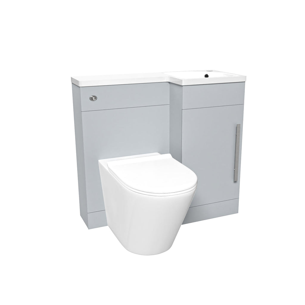 This stylish, freestanding sink and toilet vanity unit combo is a compact 900 mm (90 cm), making this the perfect space-saving option for any tight space you may have in the bathroom. The vanity and WC unit is made from 18mm water-resistant MDF making this suitable for fitting next to your bath or shower. It features a unique resin basin shape that creates the focal point of your bathroom, while the vanity unit is finished with a striking matte grey finish. The toilet and sink vanity combo including a WRAS approved cistern for extra peace of mind. Please note: The vanity cabinet and WC unit comes flat pack