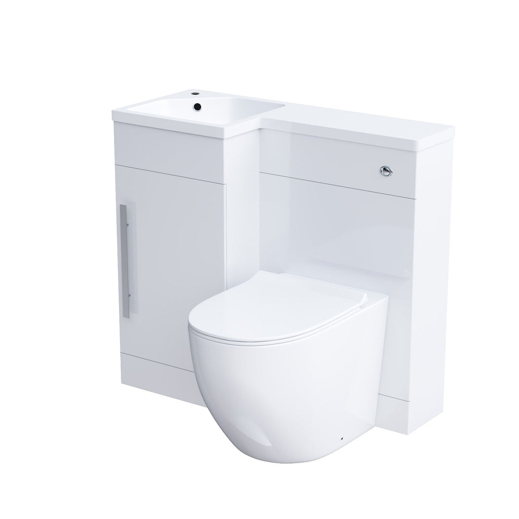 Introducing the Jersey Basin Combination Unit in White gloss, a stunning addition to any bathroom. It features a white resin basin top, with a door water resistant MDF cabinet and WC unit and contemporary chrome effect handles, bringing a modern look to your bathroom.