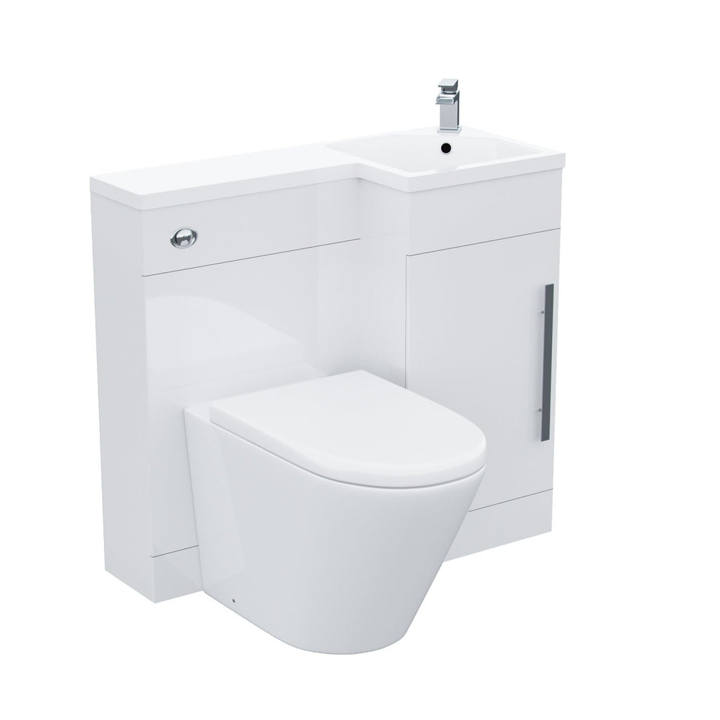 This stylish, freestanding sink and toilet vanity unit combo is a compact 900 mm (90 cm), making this the perfect space-saving option for any tight space you may have in the bathroom.
