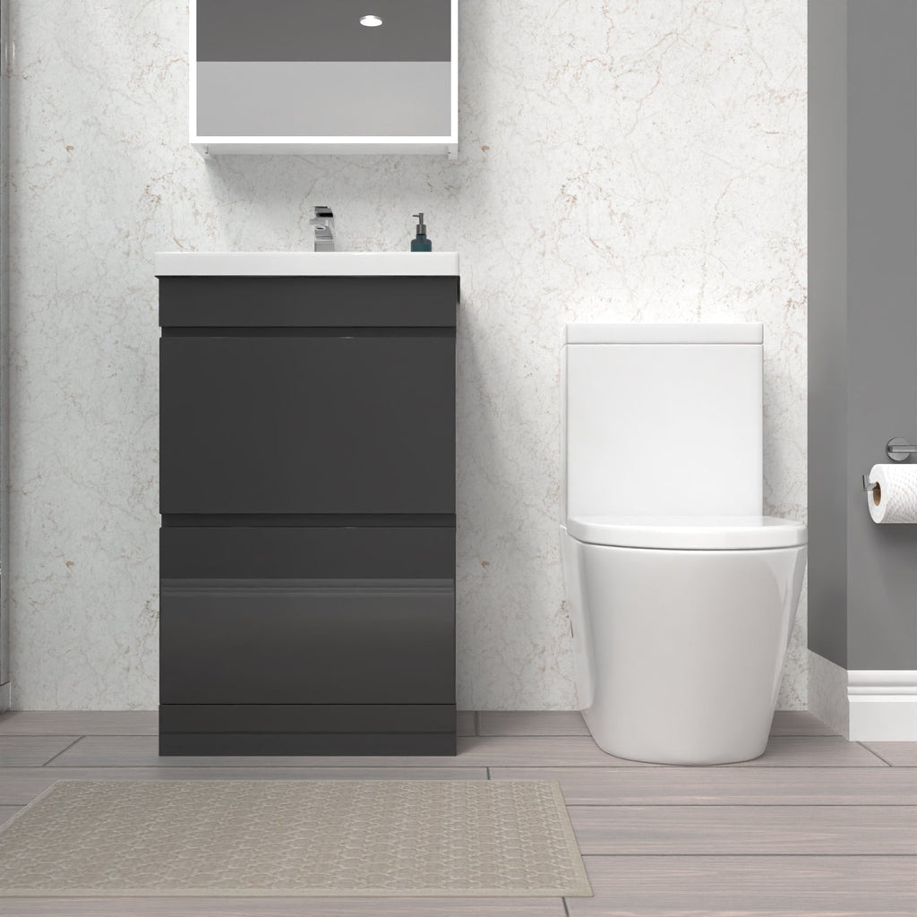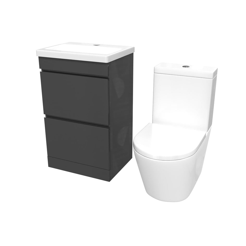This 500mm 2 drawers freestanding basin vanity and close-coupled toilet set offers ample storage and washing space while minimising the space taken up in your bathroom. The vanity unit is a stylish and functional addition to any bathroom, featuring a high-quality ceramic basin and shelving underneath, making it ideal for everyday use. The vanity unit is constructed with water-resistant materials and has a sleek gloss finish, adding a modern touch to your bathroom. Also, our close-coupled toilet comes complete with a dual flush cistern and soft closed seat, making it safe for people of all ages to use and helping prevent fingers from getting trapped. This furniture combination is ideal for any modern bathroom.