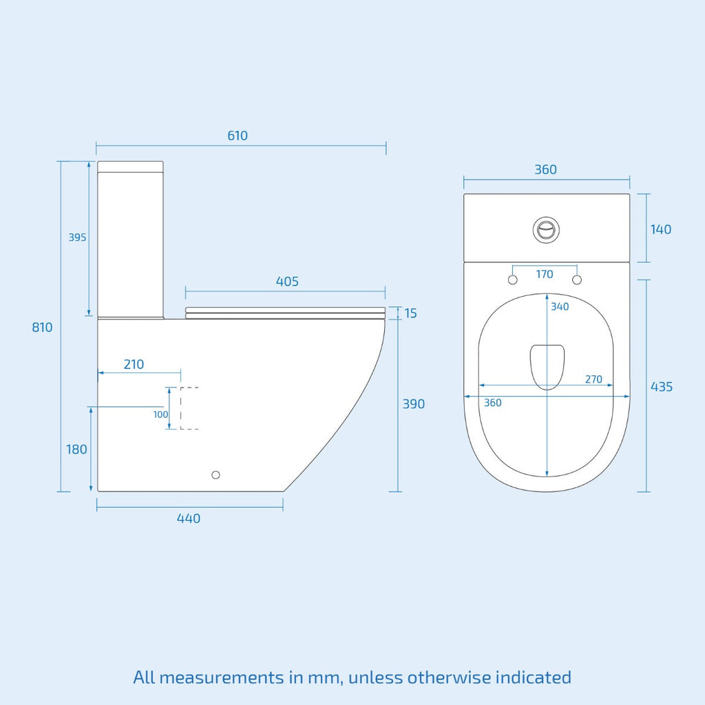 - Cistern flush: 3/6 litres dual flush