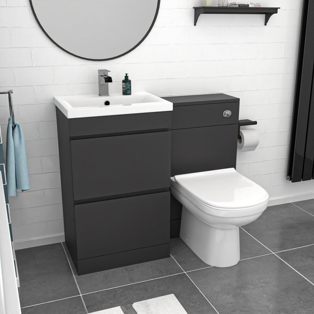 This Nes Home Dark Grey 500mm PVC 2 Drawers Vanity WC Unit BTW Toilet and Bath Set provides generous storage and washing space while efficiently using bathroom space. The vanity unit combines style and practicality with a high-quality ceramic basin and convenient shelving underneath, perfect for daily use.