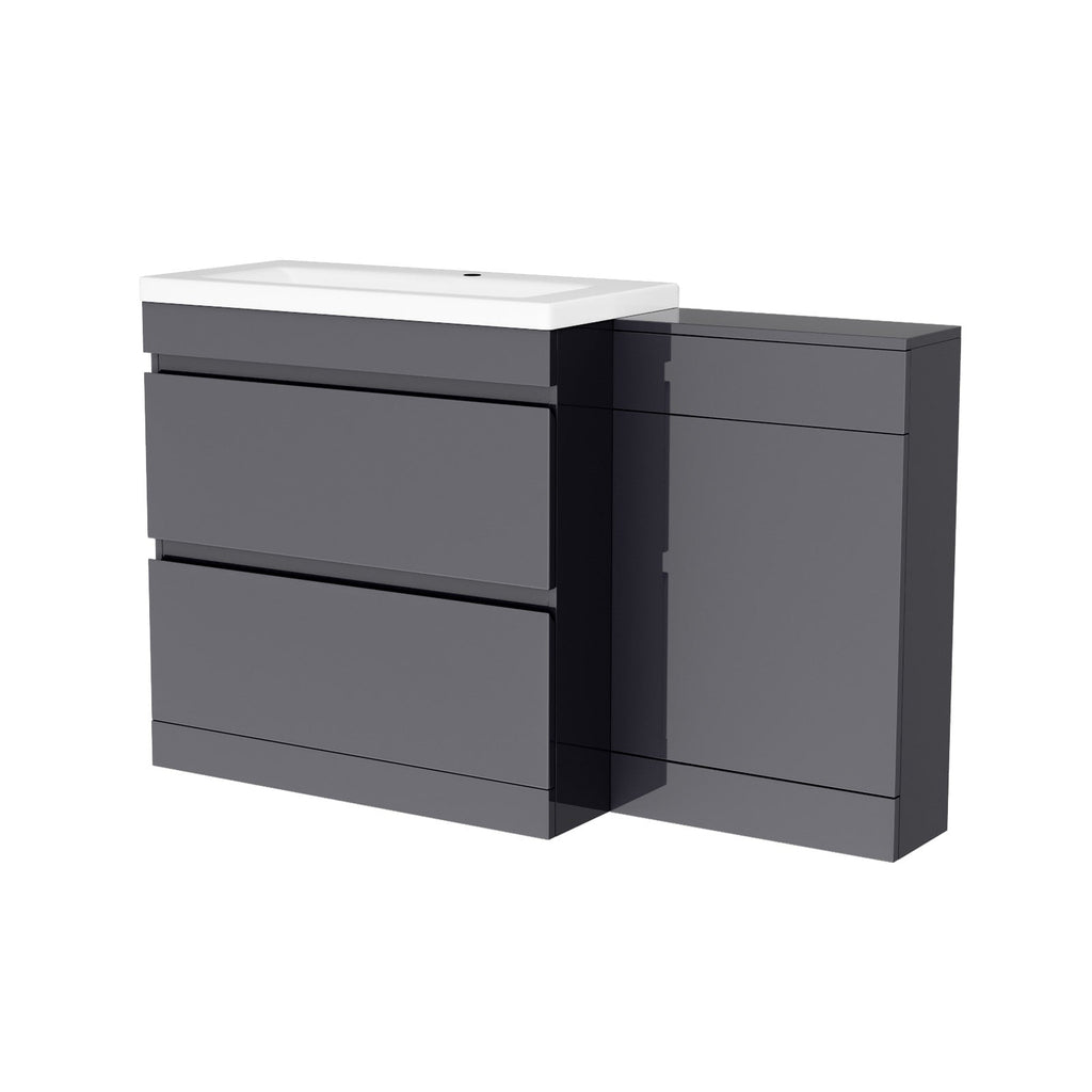 This Freestanding PVC 800mm 2 Drawers Vanity & WC Unit provides generous storage and washing space while efficiently using bathroom space. The vanity unit combines style and practicality with a high-quality ceramic basin and convenient shelving underneath, perfect for daily use. Made from water-resistant materials with a sleek finish, it adds a modern touch to your bathroom. This furniture set is an excellent choice for any modern bathroom.