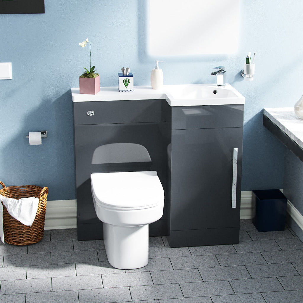 This stylish, freestanding sink and toilet vanity unit combo is a compact 900 mm (90 cm), making this the perfect space-saving option for any tight space you may have in the bathroom.