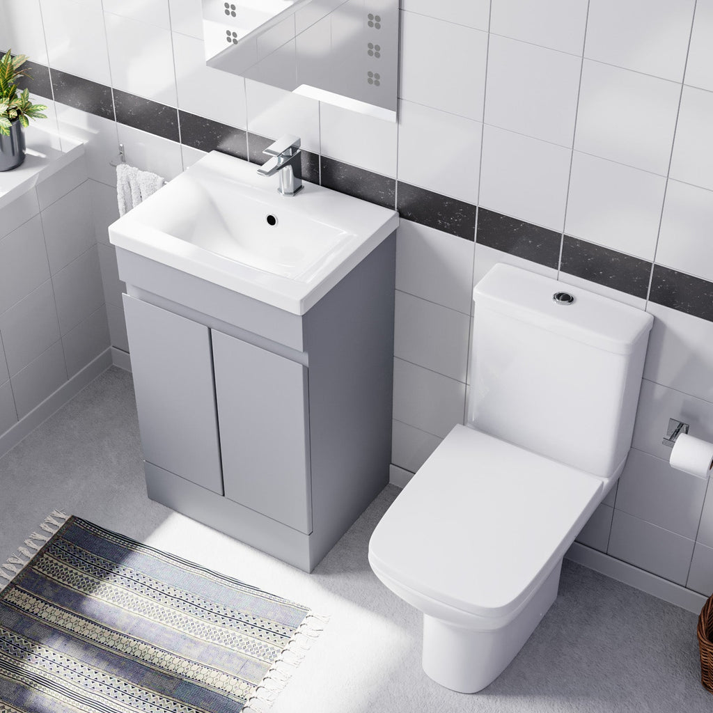 This furniture set comes with the 500mm freestanding basin vanity and close coupled rimless toilet.