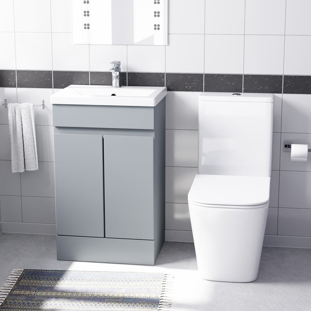 This furniture set comes with the Alaska 500mm freestanding basin vanity and Oakham close coupled rimless toilet.