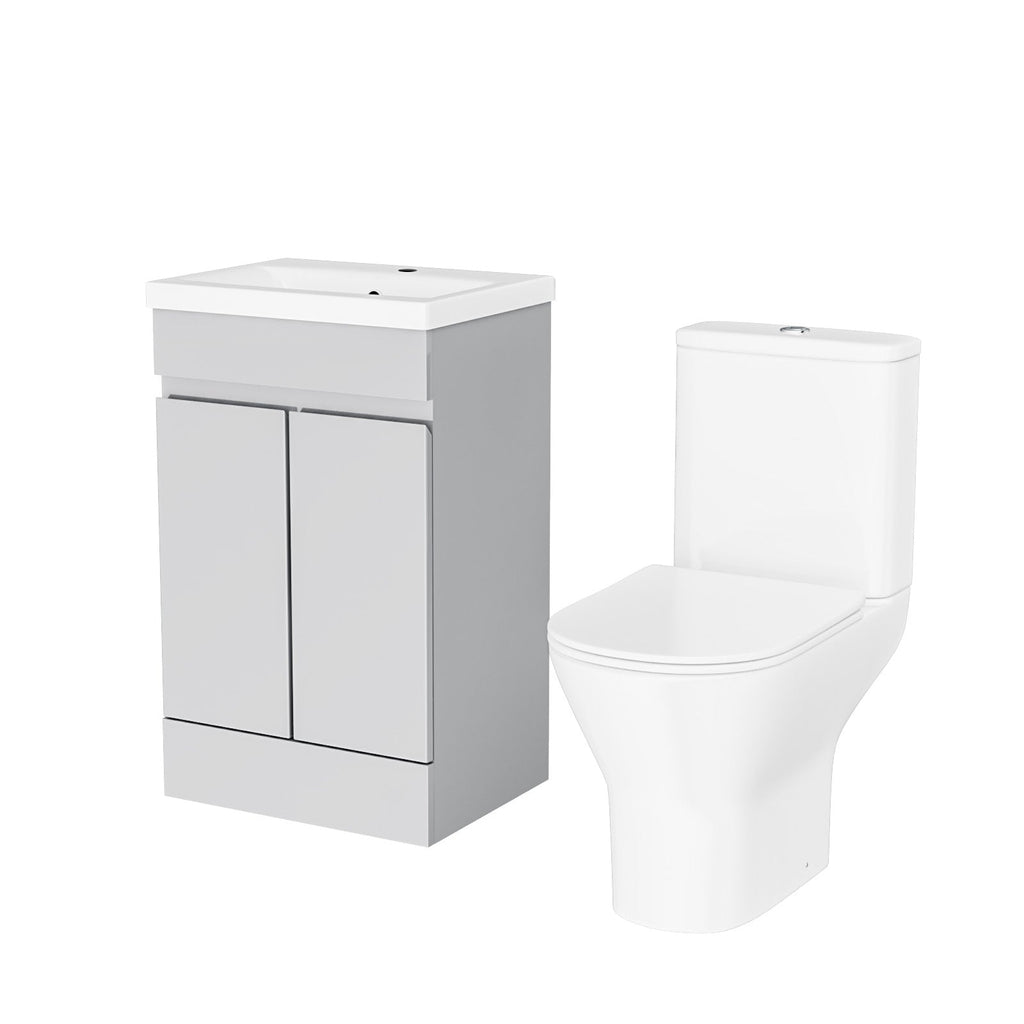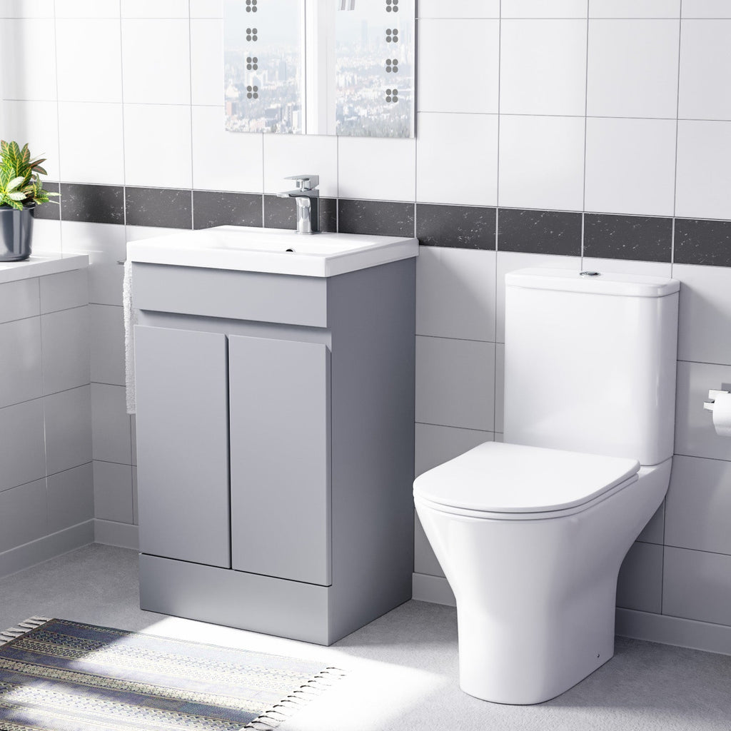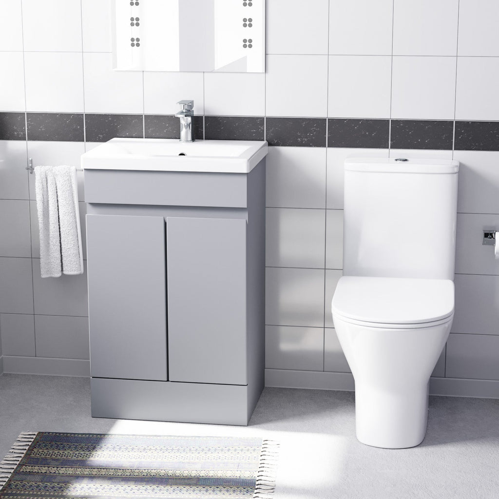 This 500mm freestanding basin vanity and close-coupled toilet set offers ample storage and washing space while minimising the space taken up in your bathroom. The vanity unit is a stylish and functional addition to any bathroom, featuring a high-quality ceramic basin and shelving underneath, making it ideal for everyday use. The vanity unit is constructed with water-resistant materials and has a sleek finish, adding a modern touch to your bathroom. Also, our close-coupled toilet comes complete with a dual flush cistern and soft closed seat, making it safe for people of all ages to use and helping prevent fingers from getting trapped. This furniture combination is ideal for any modern bathroom.