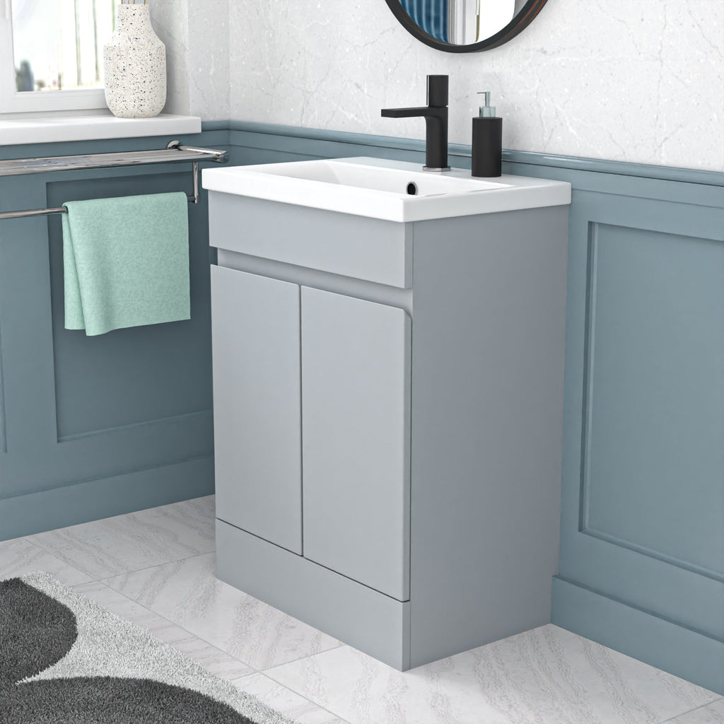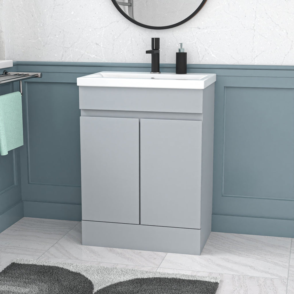 Introducing the Nes Home Matte Grey 600mm PVC Freestanding Bathroom Basin Vanity Unit! Experience elegance and functionality with this stunning vanity unit. It features a high-quality countertop basin and ample storage space, making it the perfect addition to your bathroom. Crafted for everyday use, this unit offers exceptional durability and boasts a beautiful finish. Upgrade your bathroom with style and convenience using our Basin Vanity Unit.