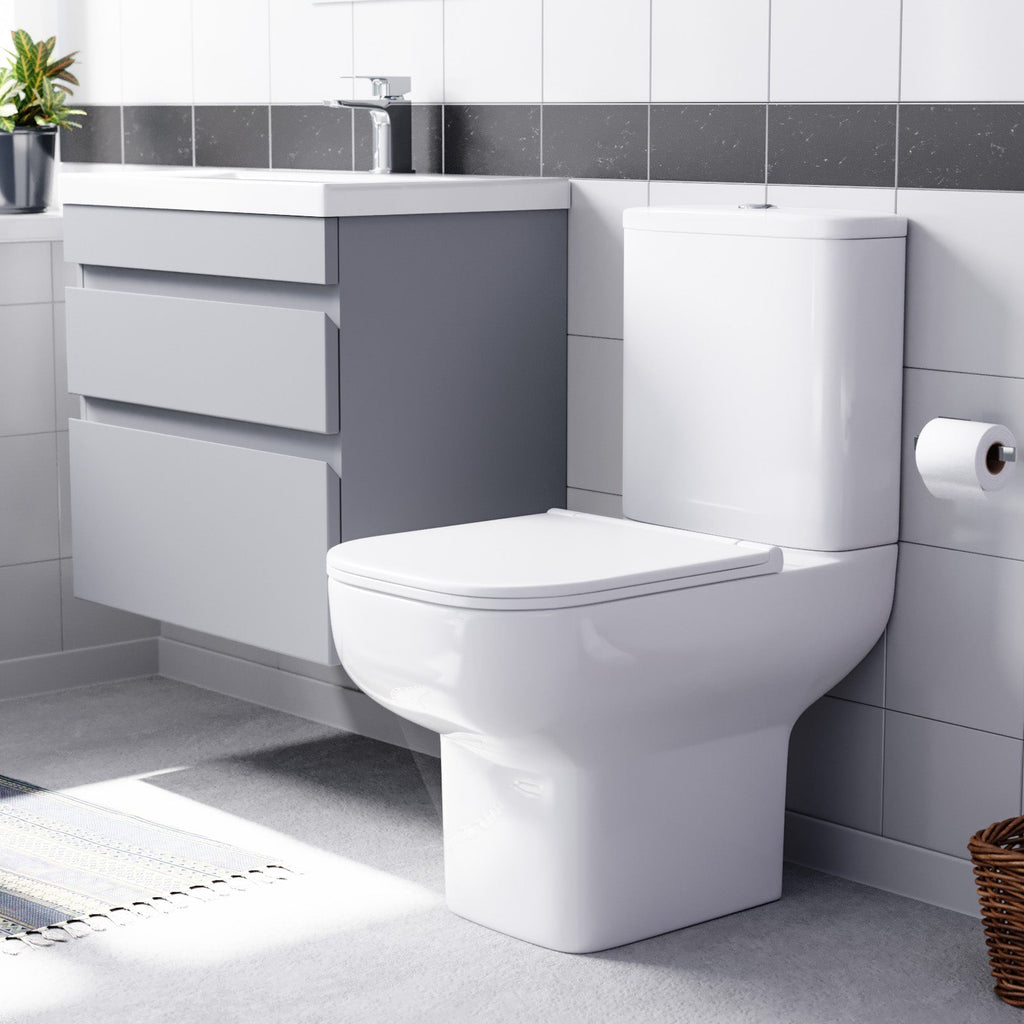 The stunning small cloakroom close-coupled toilet comes complete with a dual flush cistern and soft-close seat which makes it safe for people of all ages to use, and help prevent fingers getting trapped.