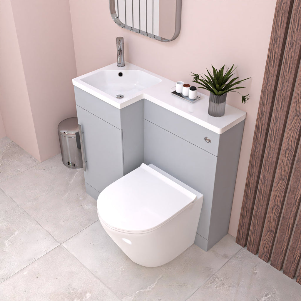This stylish, freestanding sink and toilet vanity unit combo is a compact 900 mm (90 cm), making this the perfect space saving option for any tight space you may have in the bathroom.