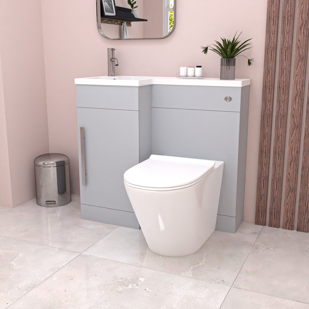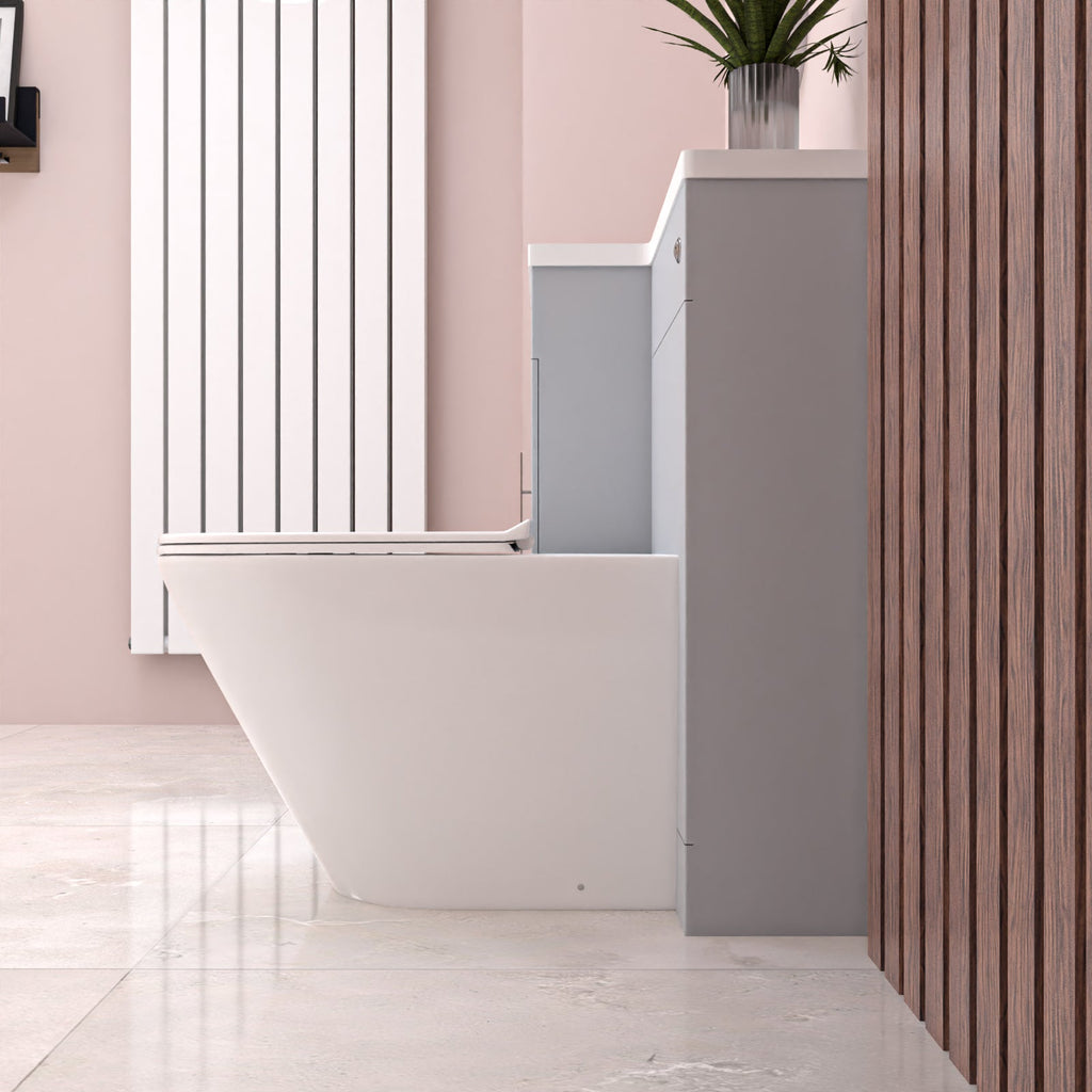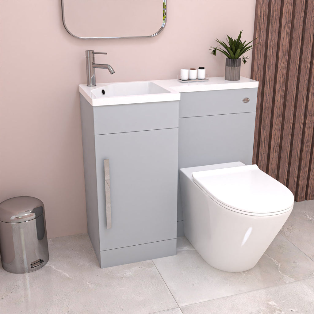This stylish, freestanding sink and toilet vanity unit combo is a compact 900 mm (90 cm), making this the perfect space-saving option for any tight space you may have in the bathroom. The vanity and WC unit is made from 18mm water-resistant MDF making this suitable for fitting next to your bath or shower. It features a unique resin basin shape that creates the focal point of your bathroom, while the vanity unit is finished with a striking matte grey finish. The toilet and sink vanity combo including a WRAS approved cistern for extra peace of mind. Please note: The vanity cabinet and WC unit comes assembled