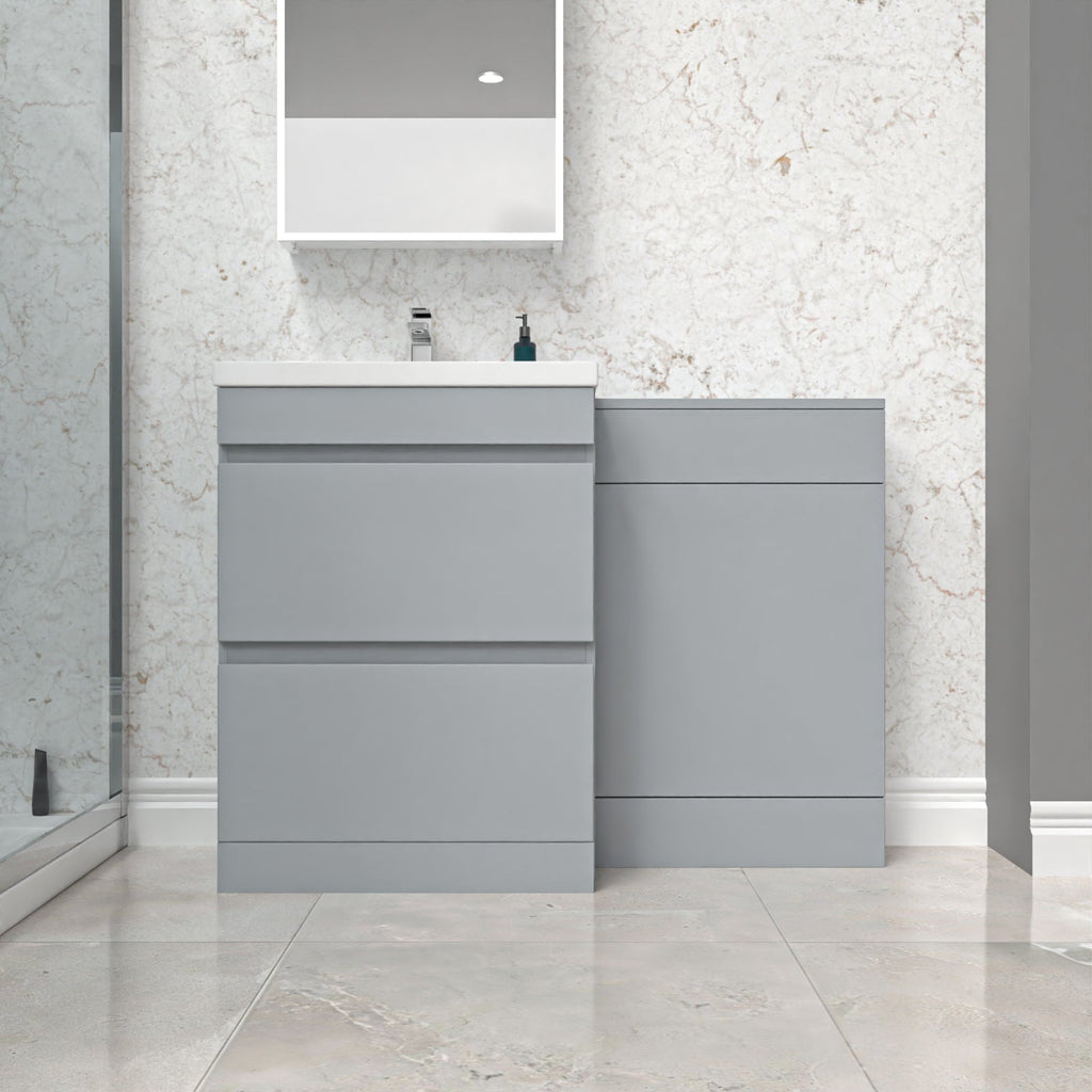 This Freestanding PVC 600mm 2 Drawers Vanity & WC Unit provides generous storage and washing space while efficiently using bathroom space. The vanity unit combines style and practicality with a high-quality ceramic basin and convenient shelving underneath, perfect for daily use. Made from water-resistant materials with a sleek finish, it adds a modern touch to your bathroom. This furniture set is an excellent choice for any modern bathroom.