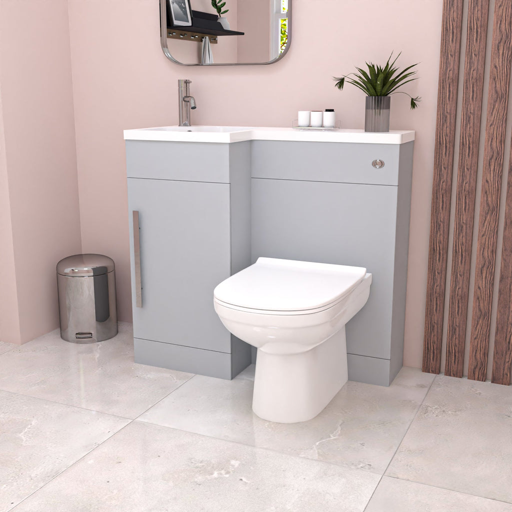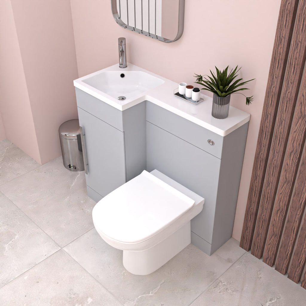 This stylish, freestanding sink and toilet vanity unit combo is a compact 900 mm (90 cm), making this the perfect space saving option for any tight space you may have in the bathroom. The vanity and WC unit is made from 18mm water resistant MDF making this suitable for fitting next to your bath or shower. It features a unique resin basin shape that creates the focal point of your bathroom, while the vanity unit is finished with a striking matte grey finish. The toilet and sink vanity combo includes a WRAS approved cistern for extra peace of mind.