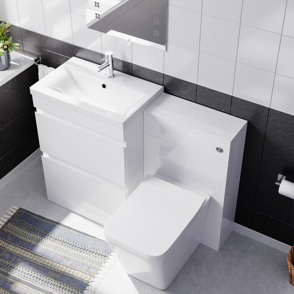 - Basin vanity and toilet set for efficient bathroom space utilization.
