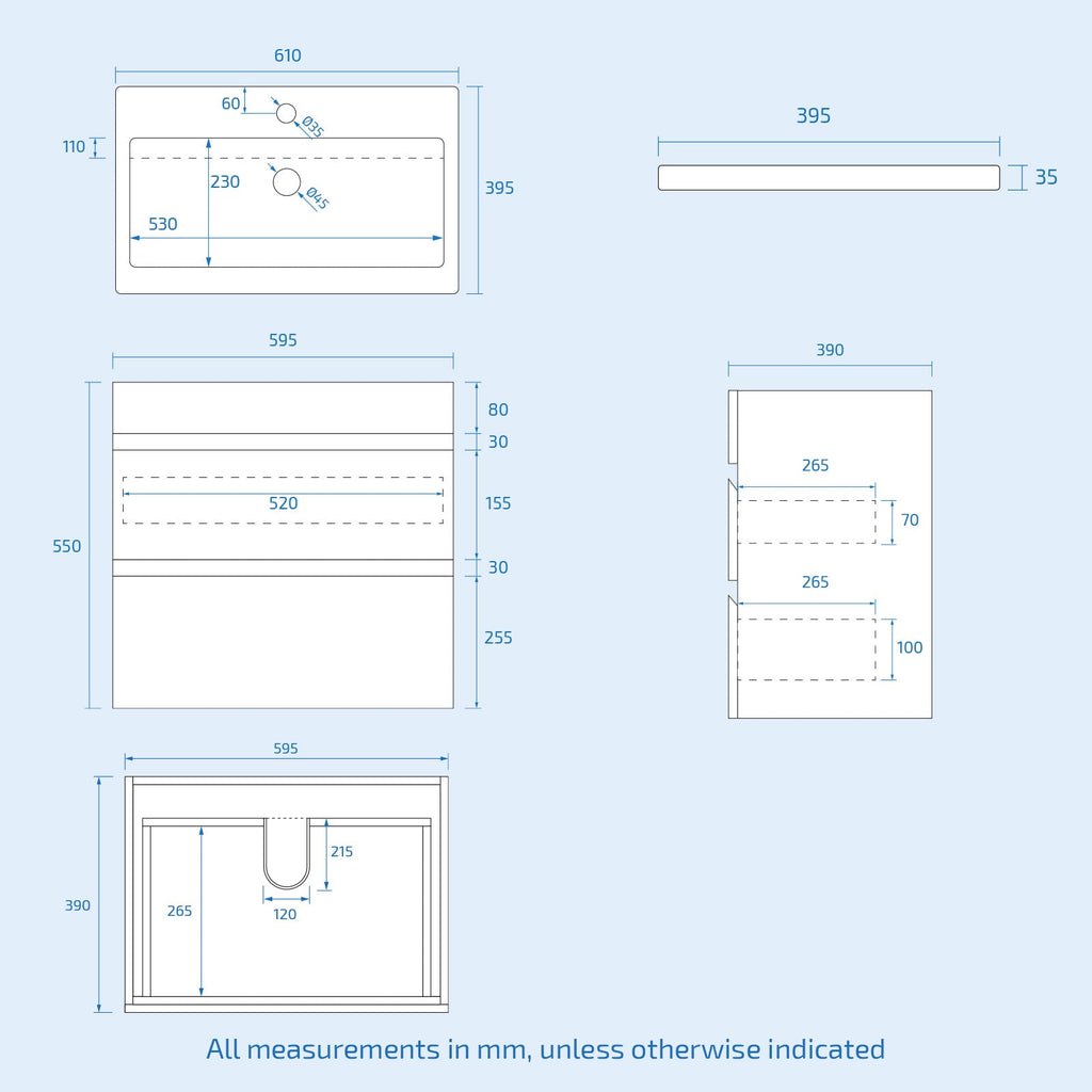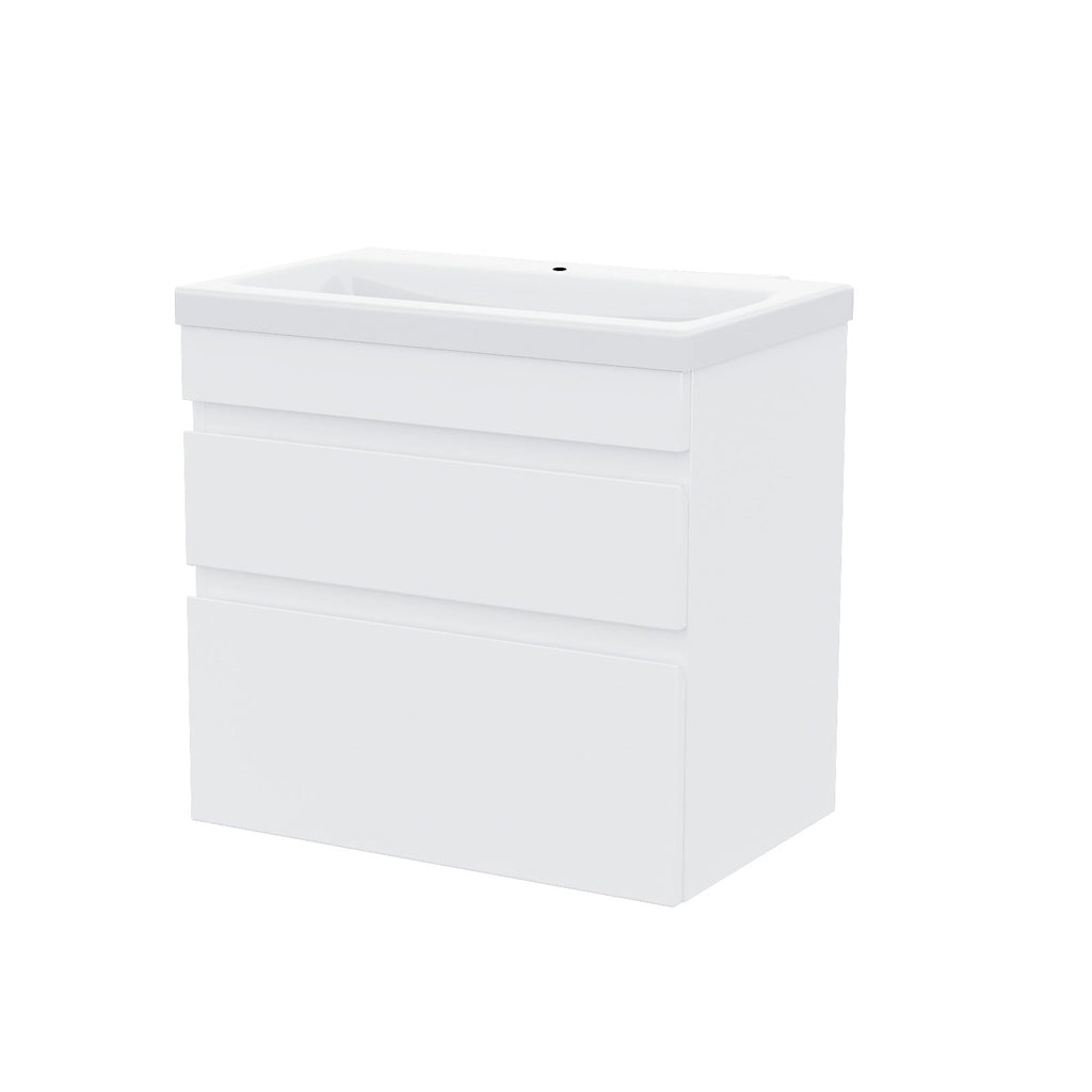 Introducing the Hardie 600mm 2 Drawer Wall Hung Vanity Cabinet and Basin Sink Unit. This stylish and practical bathroom storage solution features a stunning 600 mm white gloss wall-hung basin vanity unit. It comes equipped with a high-quality countertop basin, designed for everyday use. With its durable construction and exquisite gloss finish, our Basin Vanity Unit offers the perfect blend of functionality and elegance. Upgrade your bathroom with this beautiful and reliable addition.