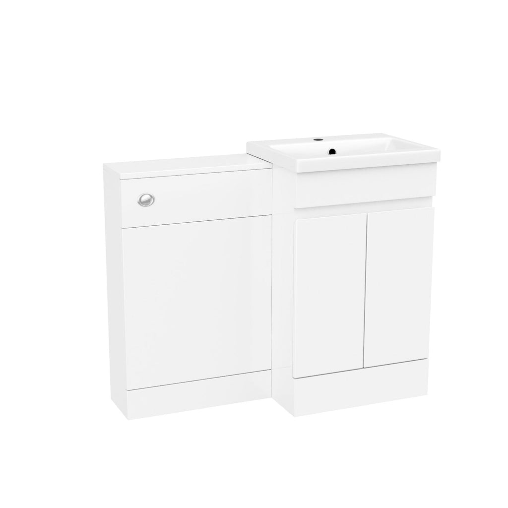 This Freestanding PVC 500mm 2 Doors Vanity & WC Unit provides generous storage and washing space while efficiently using bathroom space. The vanity unit combines style and practicality with a high-quality ceramic basin and convenient shelving underneath, perfect for daily use. Made from water-resistant materials with a sleek gloss finish, it adds a modern touch to your bathroom. This furniture set is an excellent choice for any modern bathroom.